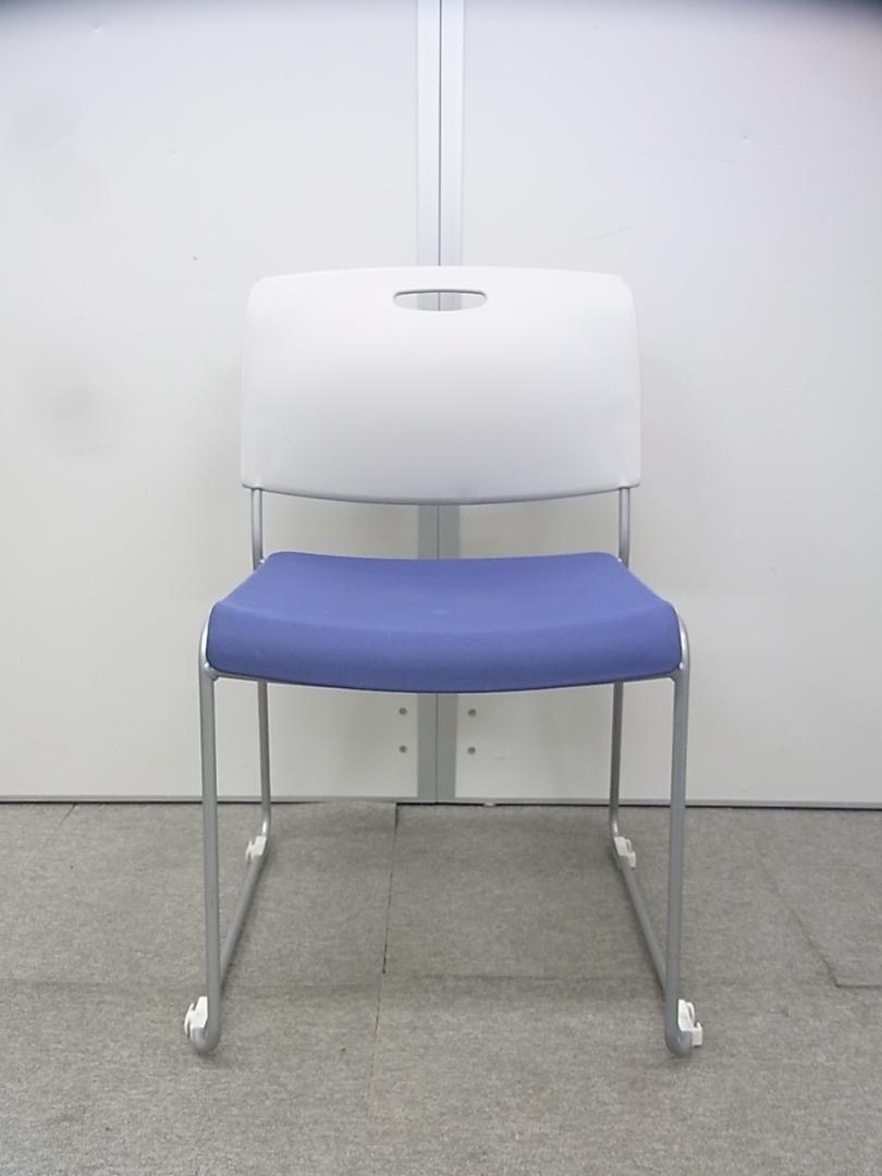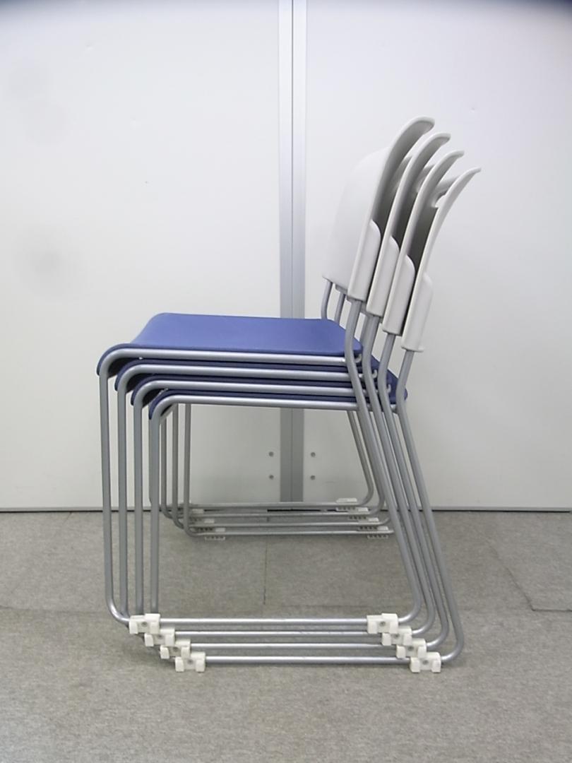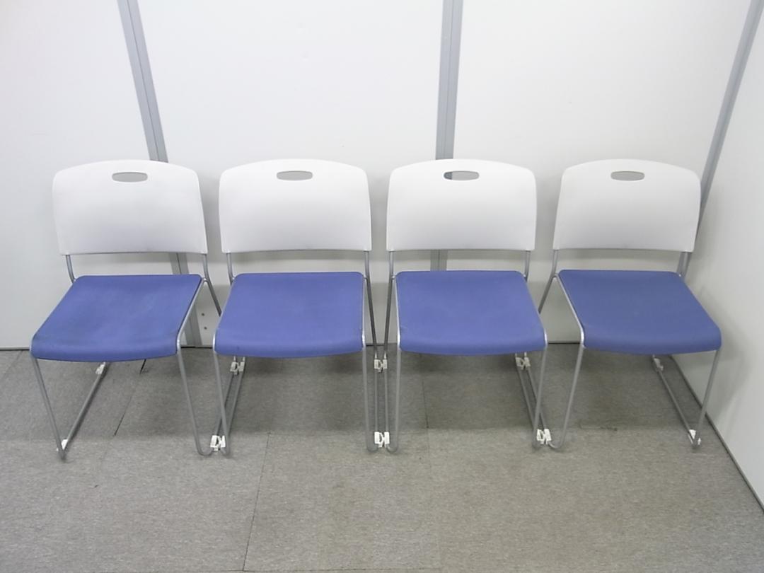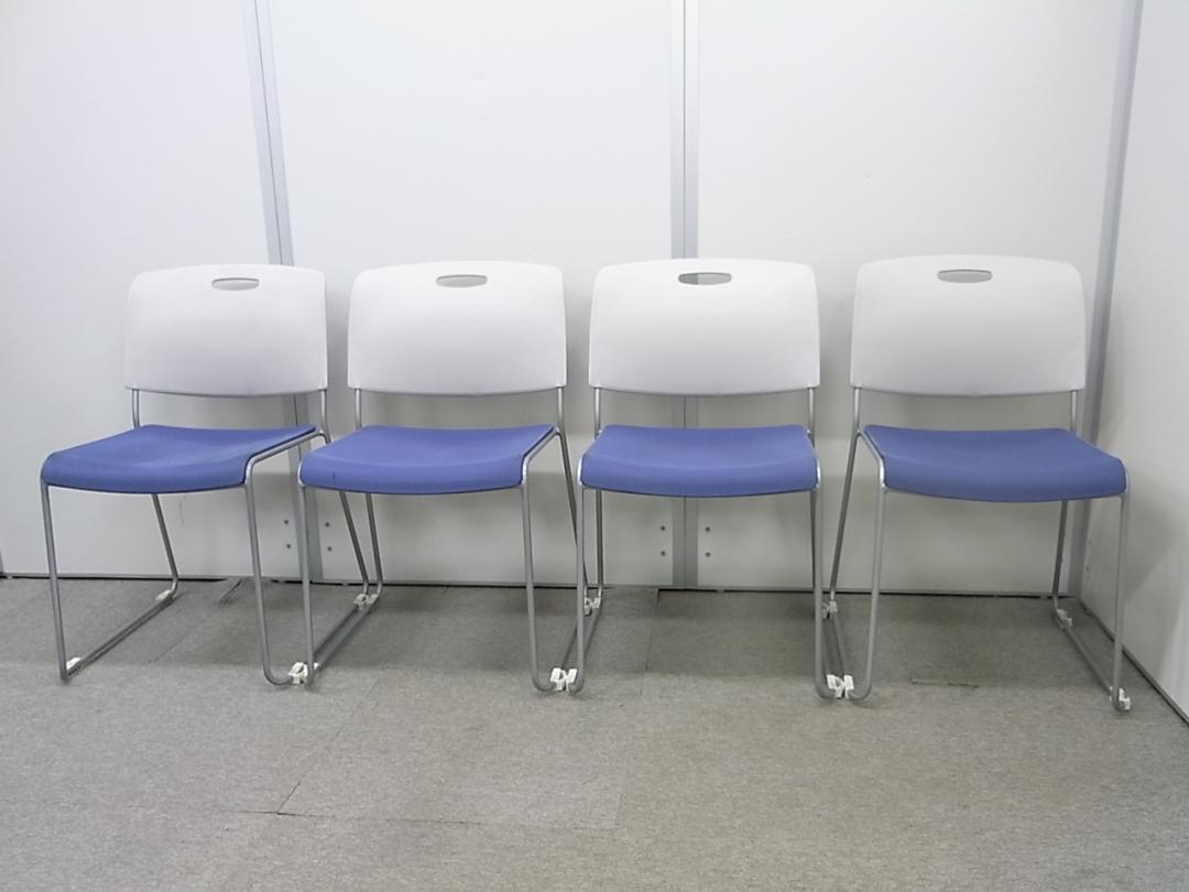 【4脚セット】会議用チェア スタッキングチェア 内田洋行製 マリンブルー色■セットでお安く!- 在庫数