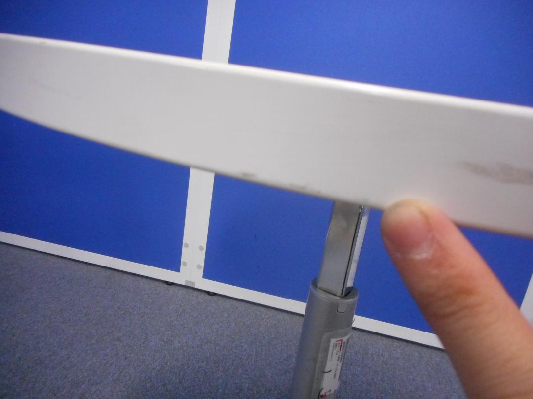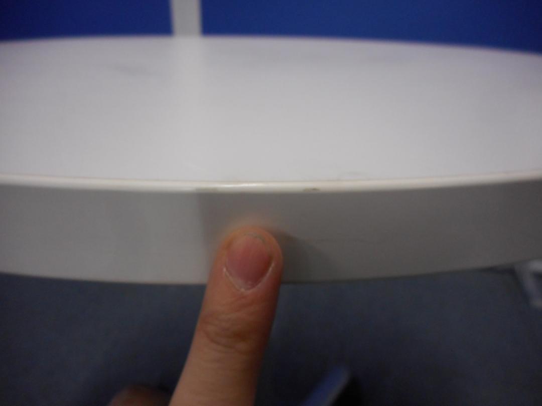 - 壊れている天板歪み、アジャスター無し、キャスター使用不可のようにそのテーブルの本来の効用を果たすための機能に不具合がある。