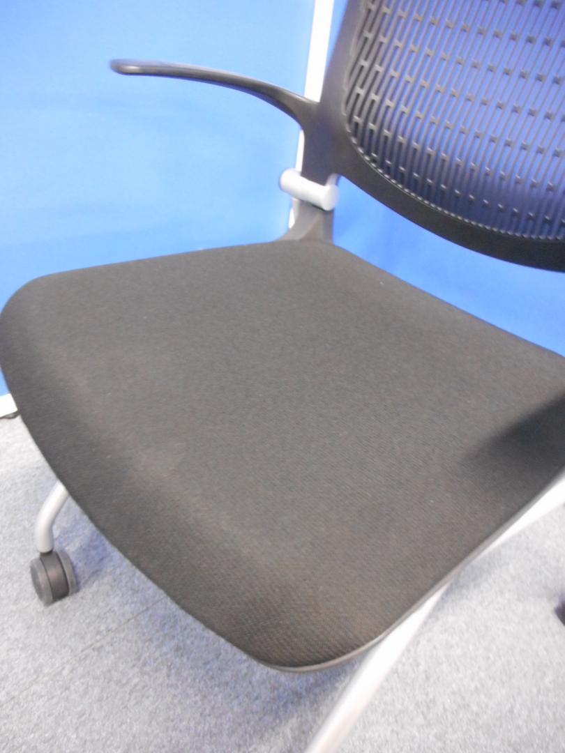 【10脚入荷】【しなやかにワーカーを受け止める洗練されたデザイン!使わない時は重ねて収納可能!】■オカムラ(okamura)製 グラータ (Grata) 肘無し ミーティングチェア ネスティングチェア ■背面樹脂メッシュ/背パッドなし ■座面:ブラック ■キャスター付