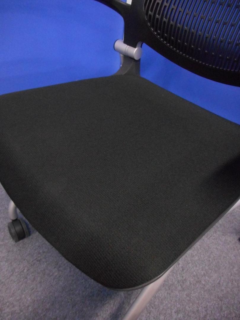 【しなやかにワーカーを受け止める洗練されたデザイン!使わない時は重ねて収納可能!】■オカムラ(okamura)製 グラータ (Grata) 肘無し ミーティングチェア ネスティングチェア ■背面樹脂メッシュ/背パッドなし ■座面:ブラック ■キャスター付