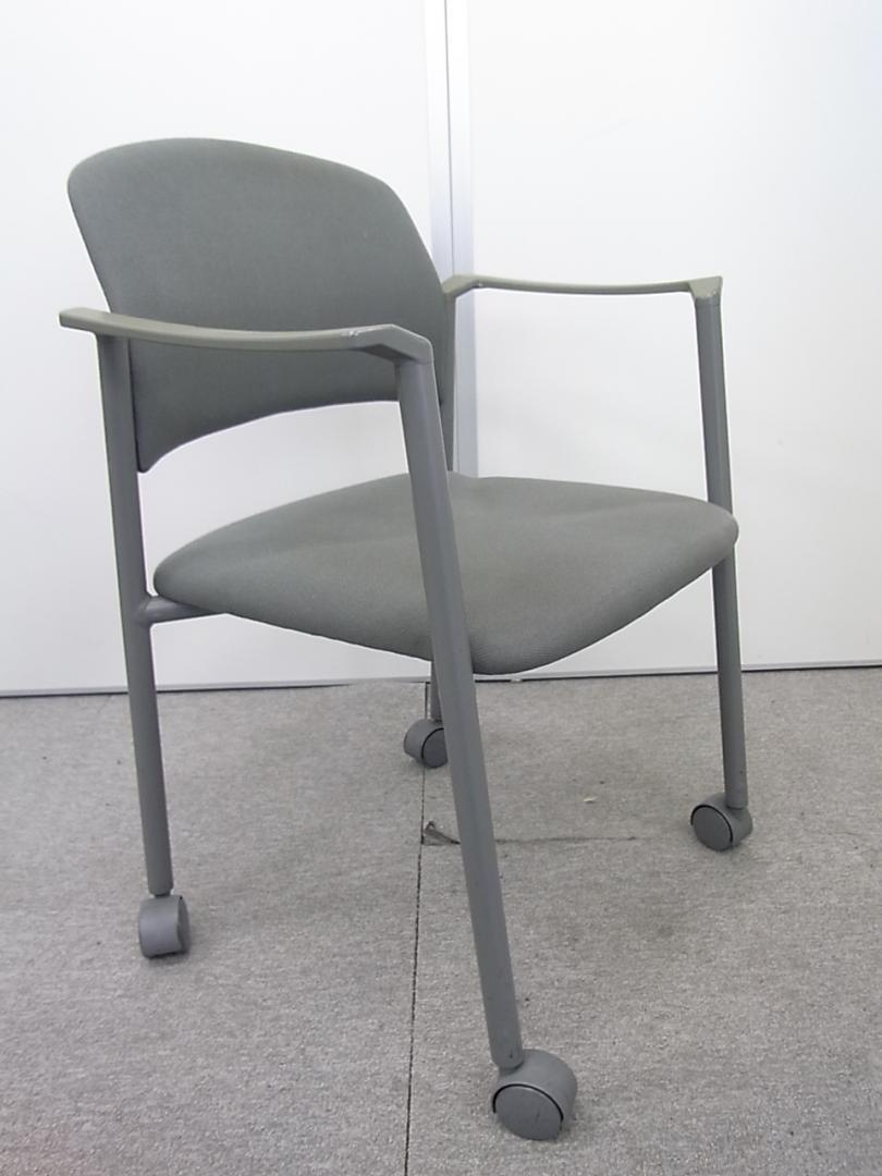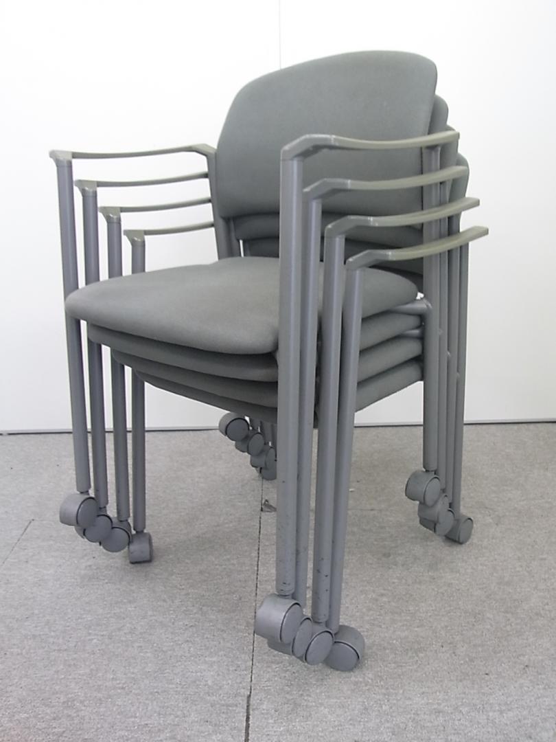 【4脚入荷】キャスター付きのミーティングチェア■汚れも目立ちにくいグレー色 使用しないときは重ねて収納も可能です!- 在庫数