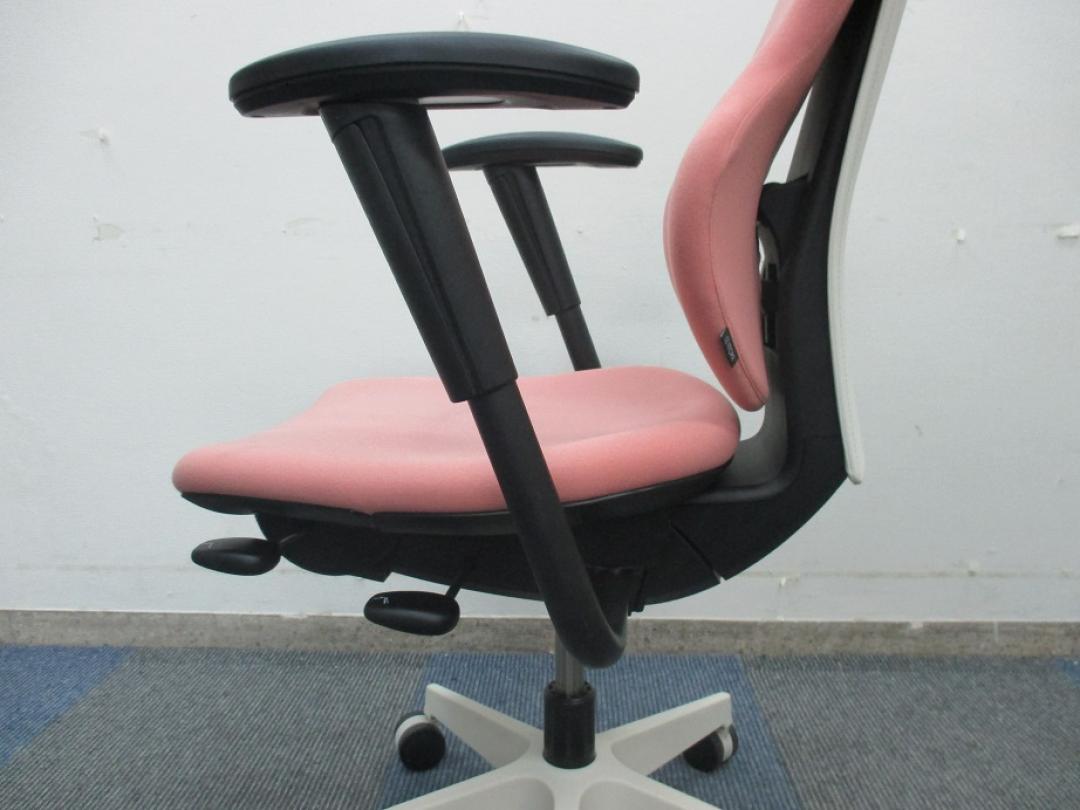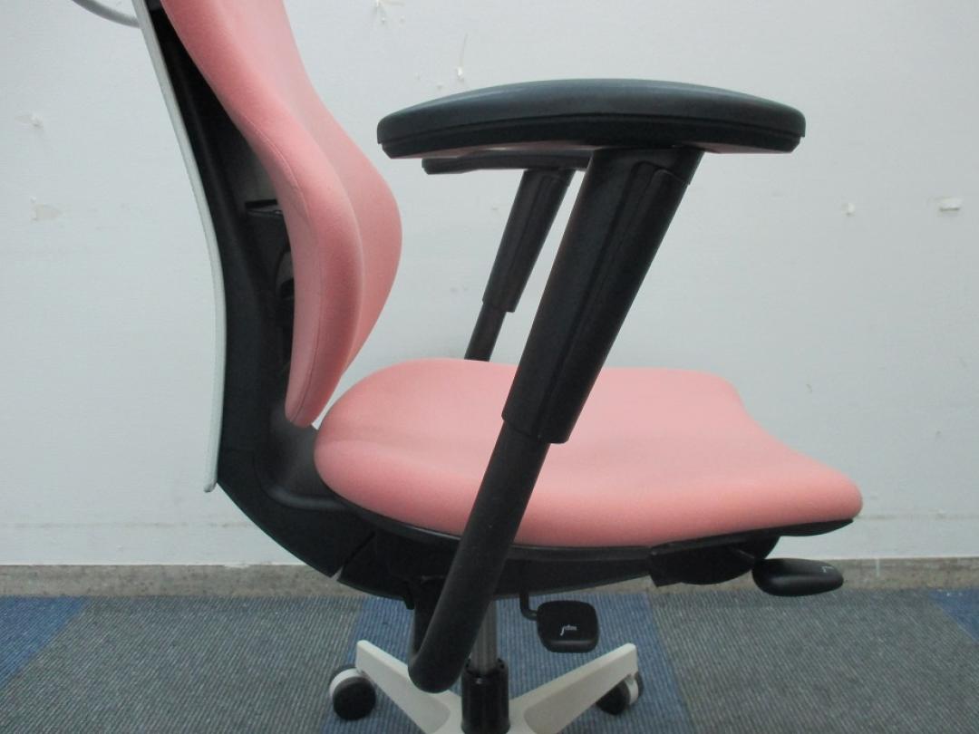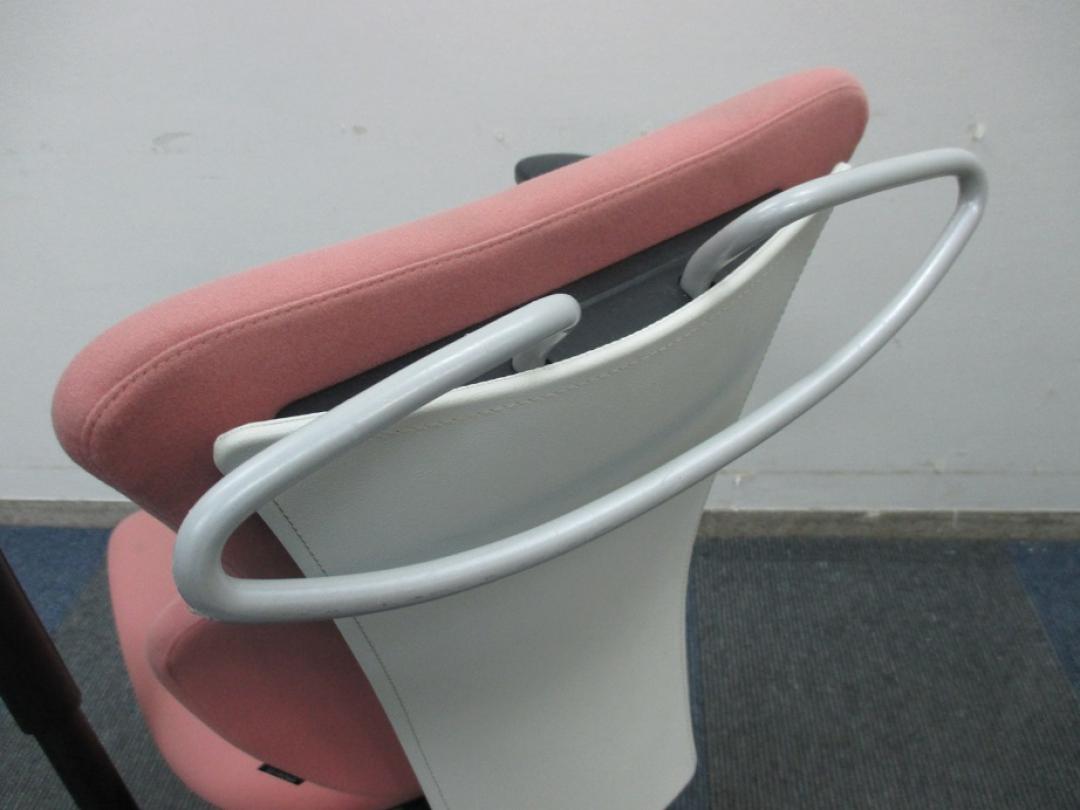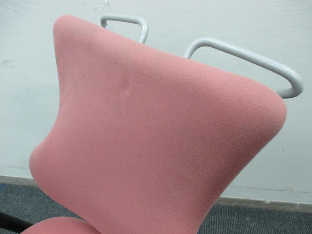【女性の方にオススメ!!】【グッドデザイン賞受賞】イトーキ製 カシコチェア 肘付き【コーラルピンク色】- 千葉店
