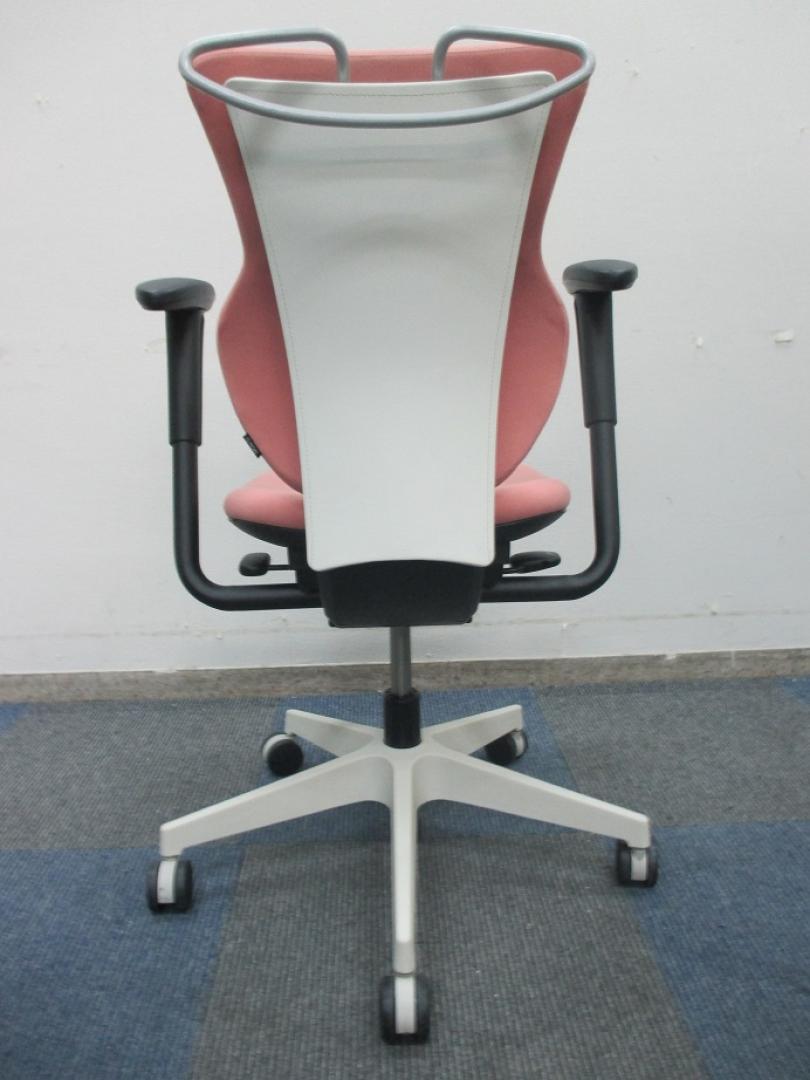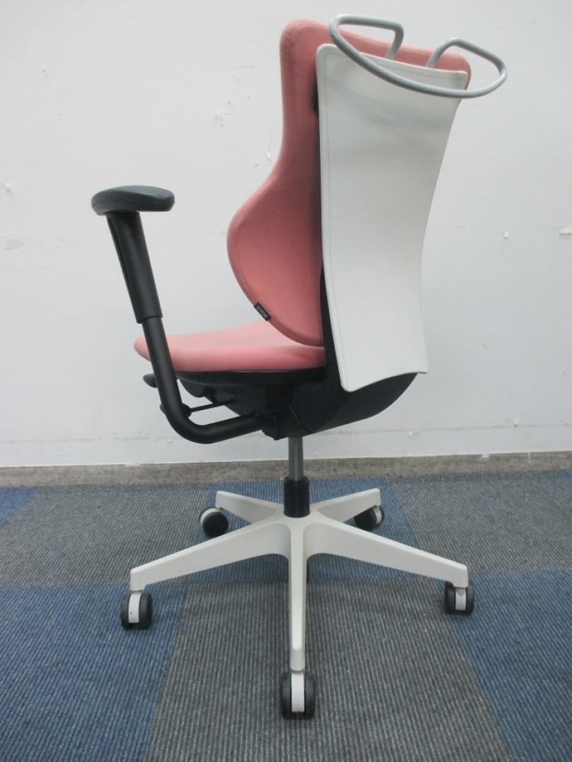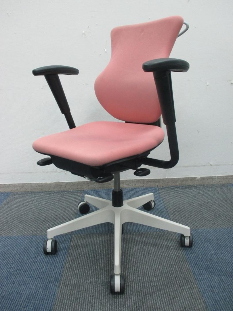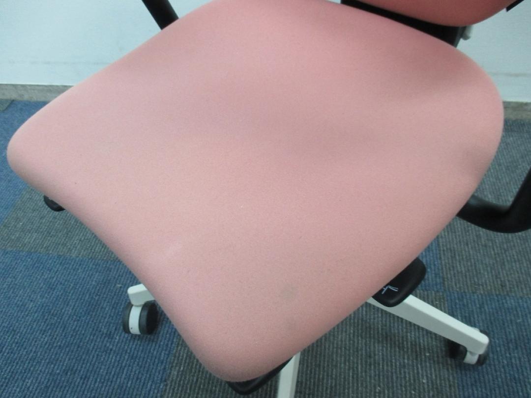 【女性の方にオススメ!!】【グッドデザイン賞受賞】イトーキ製 カシコチェア 肘付き【コーラルピンク色】- 千葉店