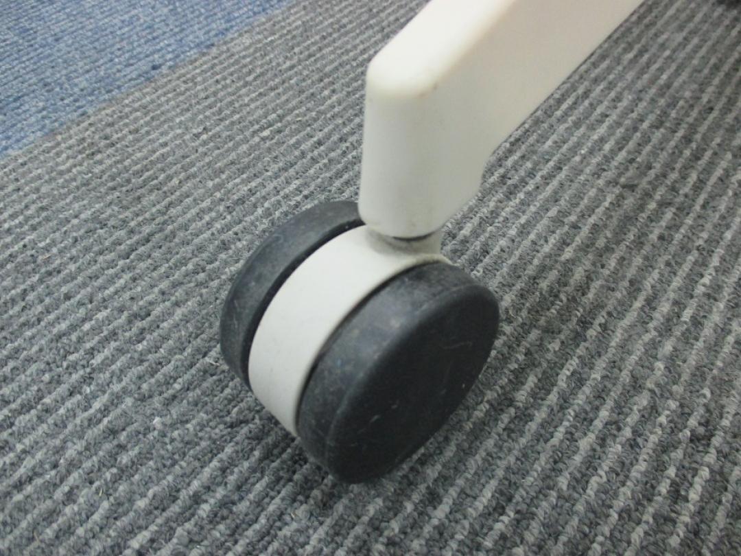 背もたれ部分はレザーホワイト色で、キャスターはナイロンとなります。