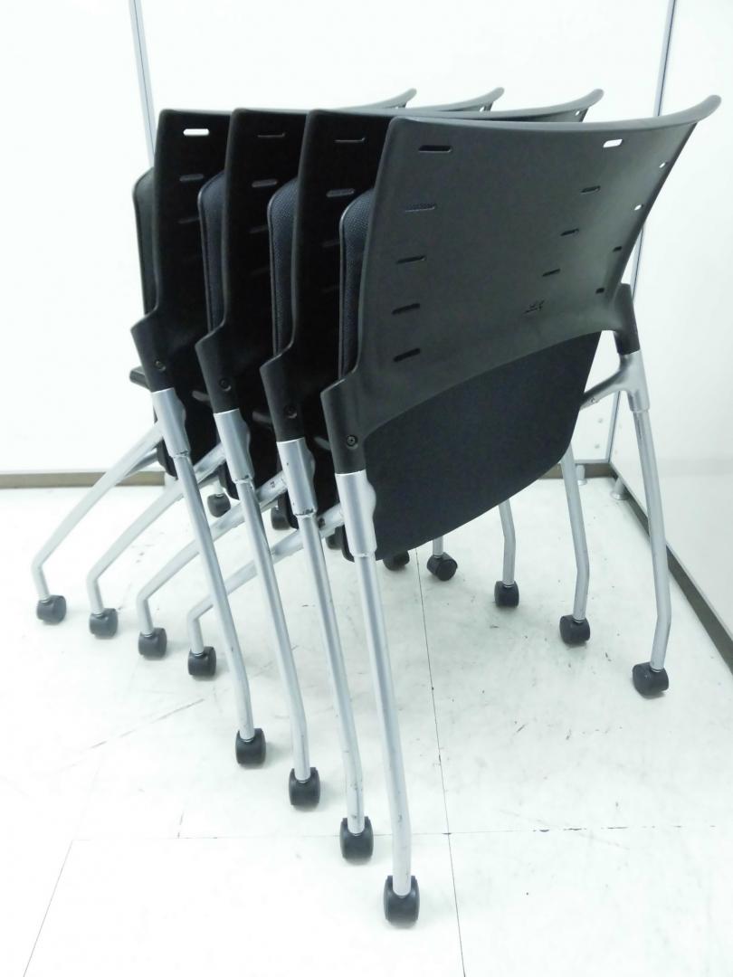 【2セット入荷】イトーキ製ミーティングチェアの4脚セット 収納便利でスペースの有効利用も!!- 京都東寺店