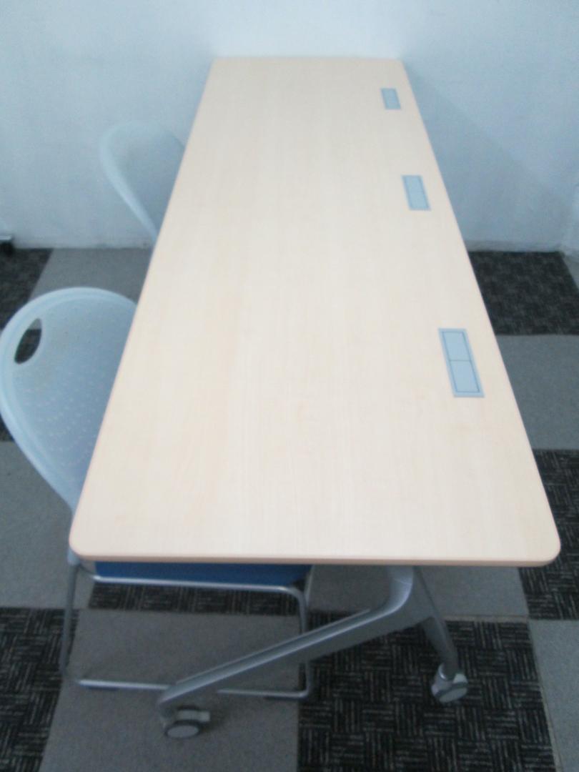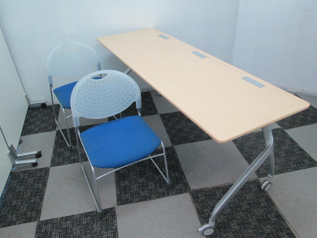 【限定1セット】国産メーカーの幅1800㎜サイドスタックテーブル+ブルースタッキングチェア2脚- 名古屋本店