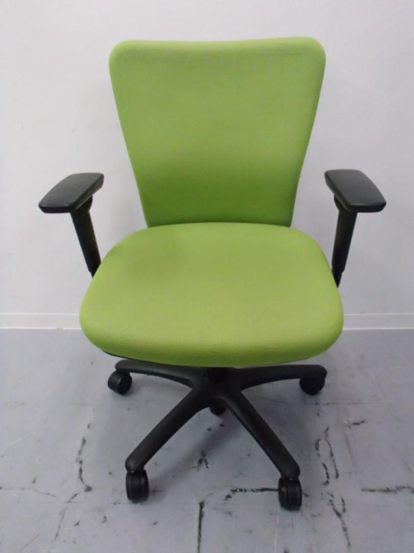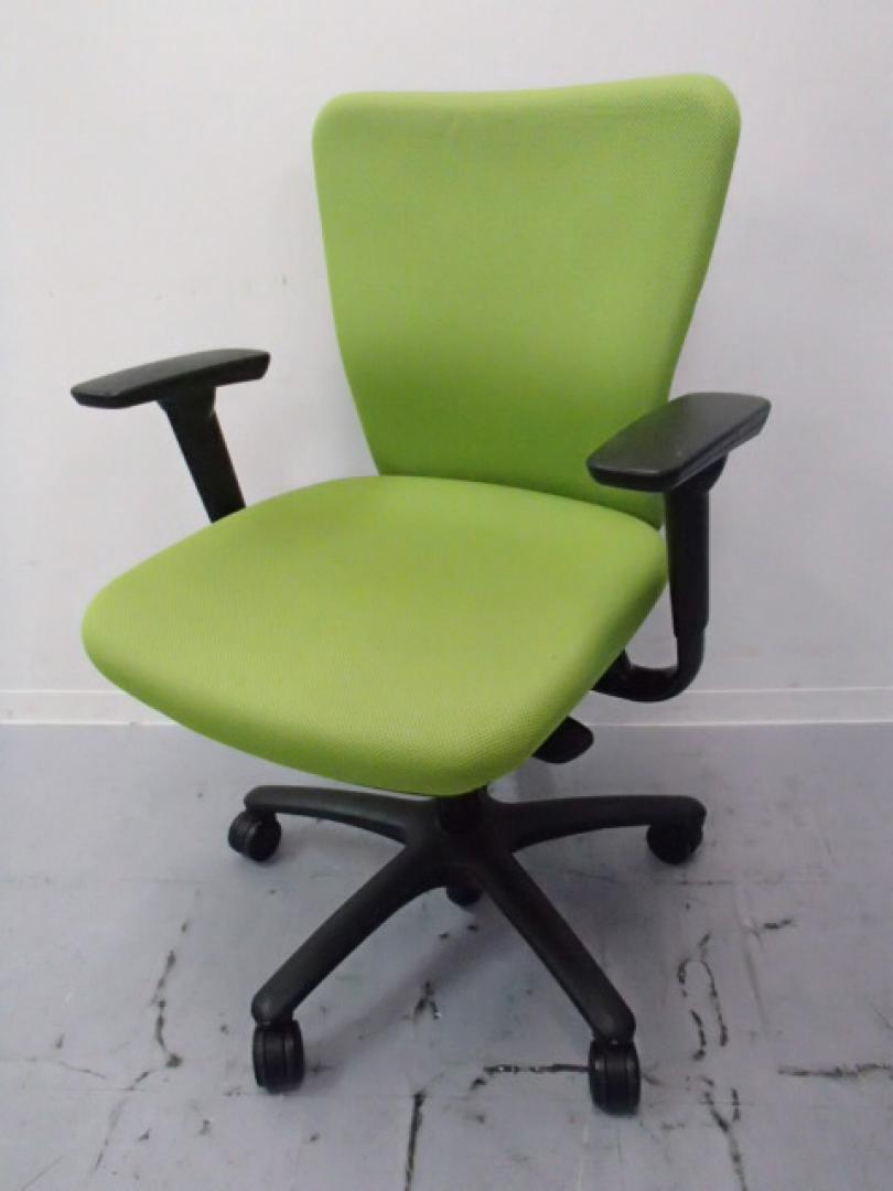【堺から世界へ!】|OAチェア(肘付き)|okamura製 ライトグリーン色|エルゴノミクス(人間工学)に基づいて開発されたオフィスチェア!サーキュラーバリューCO2削減量の算出について