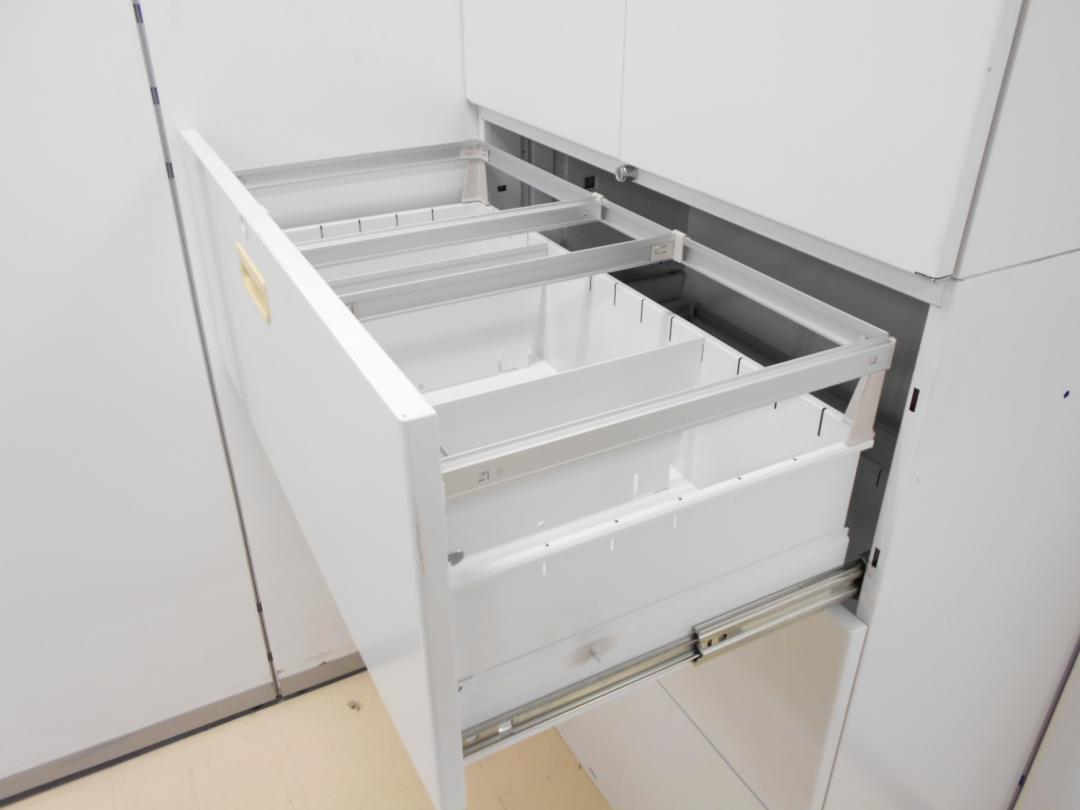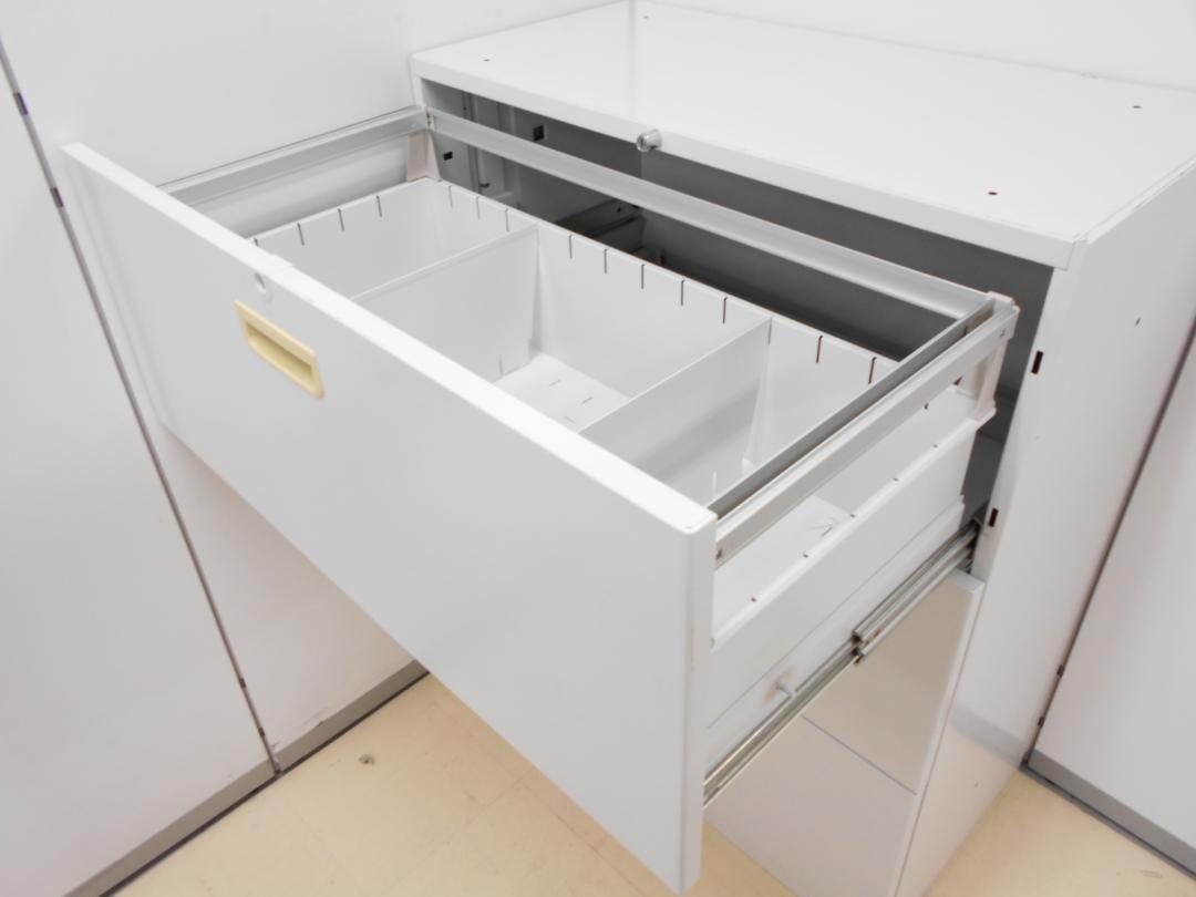 - 一部不具合ありそ引出の開閉不可、施錠不可、棚板無しといったの書庫の本来の効用を果たすための機能以外の一部が使用不可(例、扉、引出の開閉がしづらいなどがある。 )