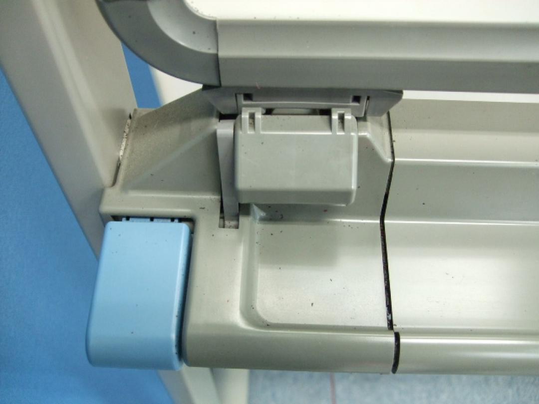 足元が邪魔にならない薄型キャスター採用、キャスターロックも赤と青のボタンで分かりやすい!