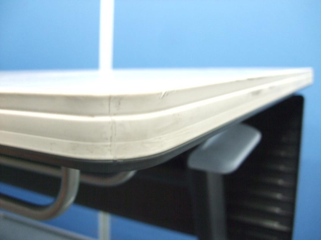 - 壊れている天板歪み、アジャスター無し、キャスター使用不可のようにそのテーブルの本来の効用を果たすための機能に不具合がある。