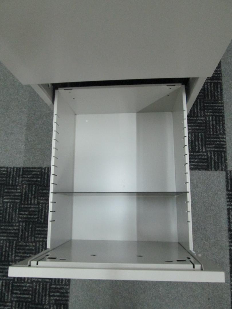 - 一部不具合ありそ引出の開閉不可、施錠不可、棚板無しといったの書庫の本来の効用を果たすための機能以外の一部が使用不可(例、扉、引出の開閉がしづらいなどがある。 )