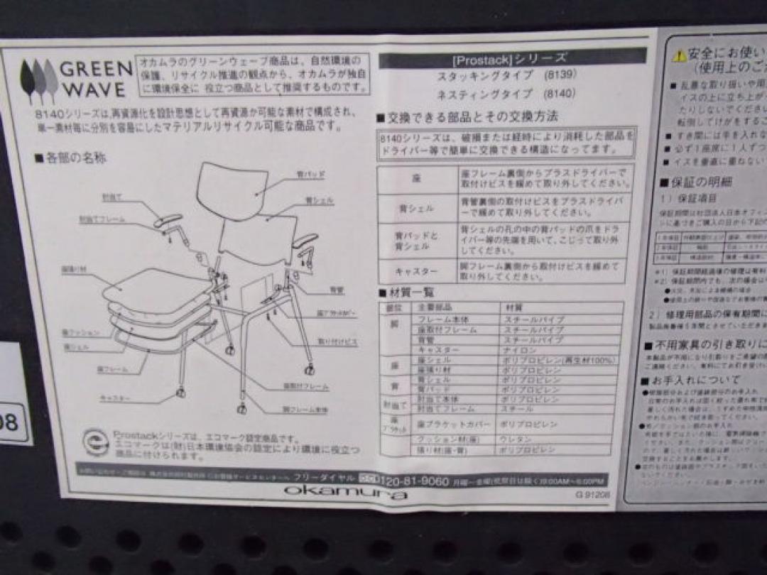 【6脚揃います!】|ミーティングチェア|okamura製|座を跳ね上げてネスティング可能、スペースをとらず、効率よく収納!- 大阪・堺店