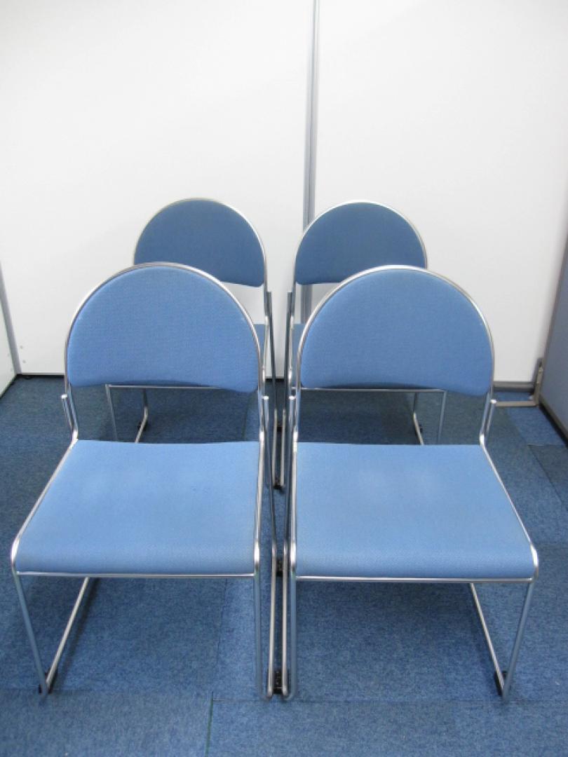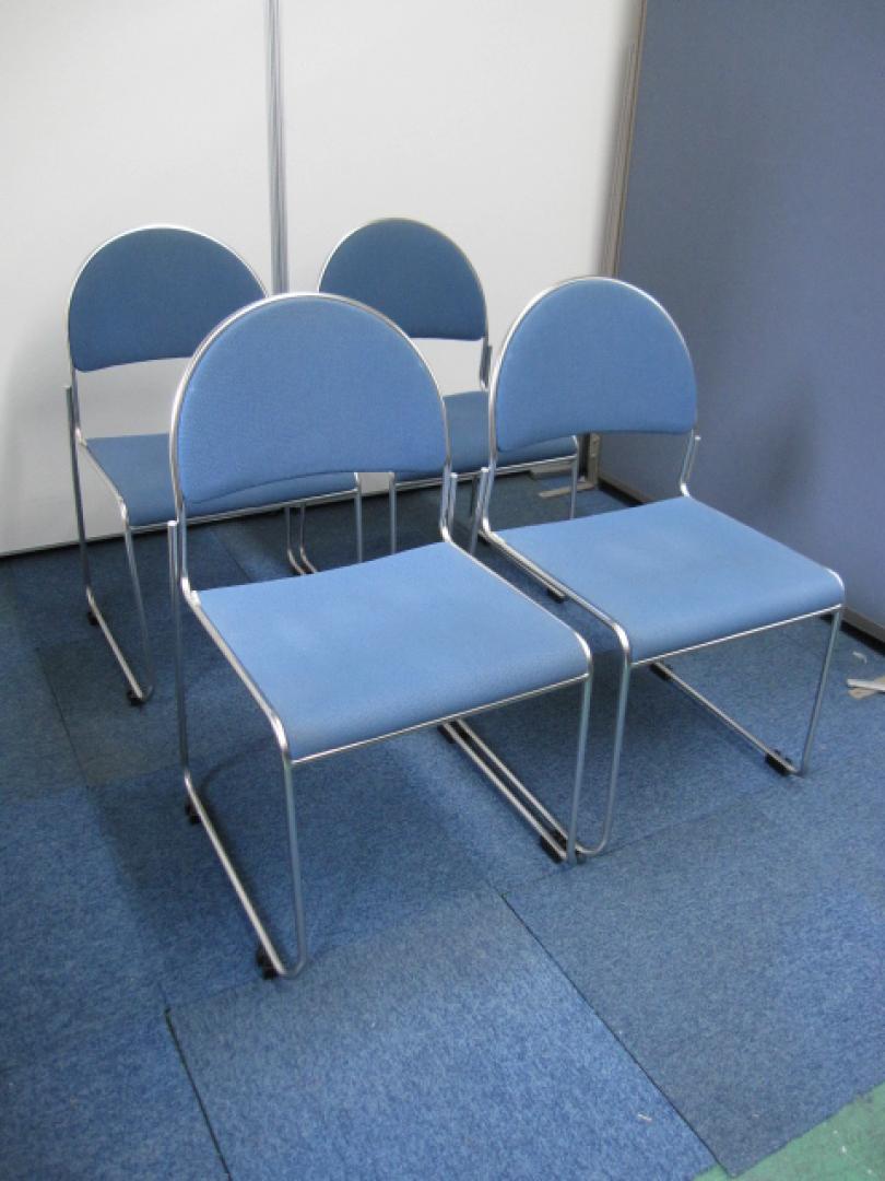 【セット商品】【スタッキングチェア】背座生地タイプ 背もたれトップが丸みを帯びていてちょっとやんわりします。【4脚セット】【会議用チェア】- 品川・三田店