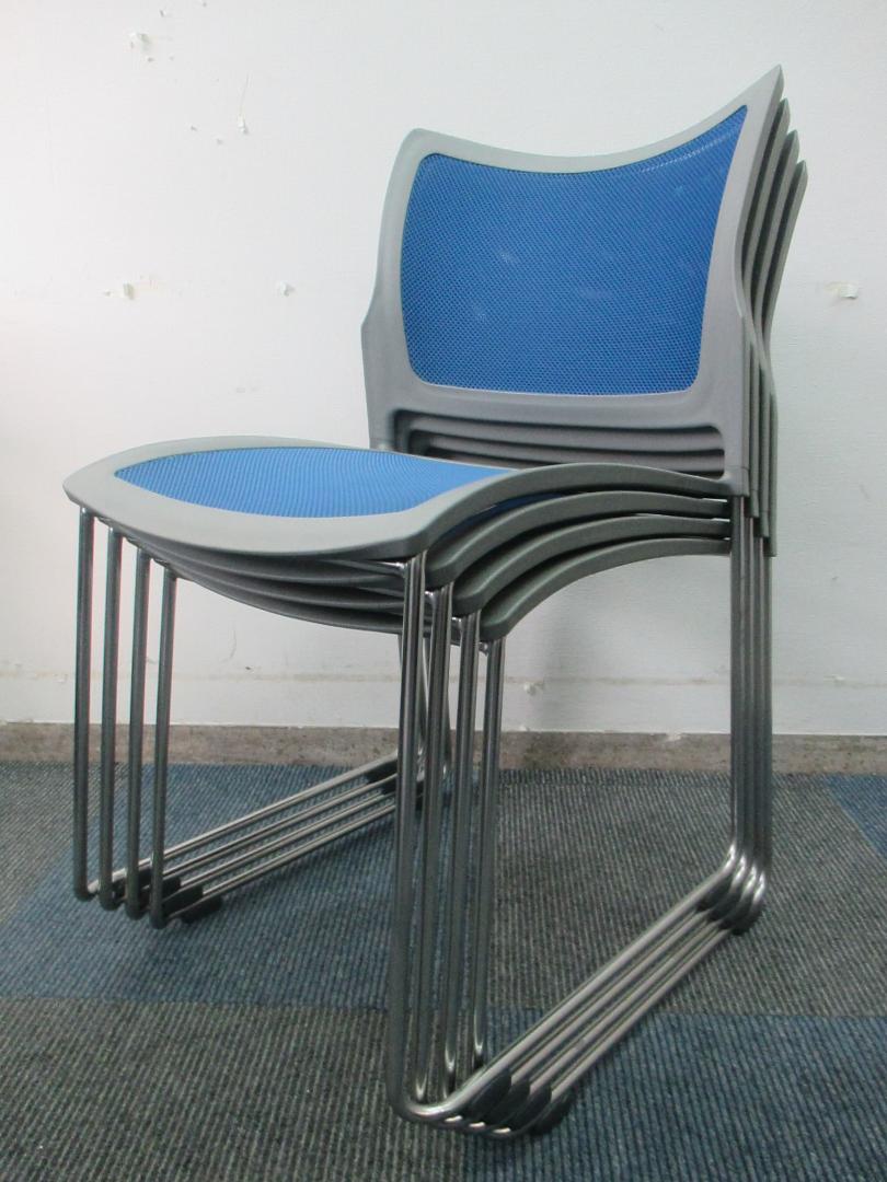【爽やかなライトブルー】【ロット商品】オカムラ製 スタックチェア【メッシュチェア】【中古】- 千葉店