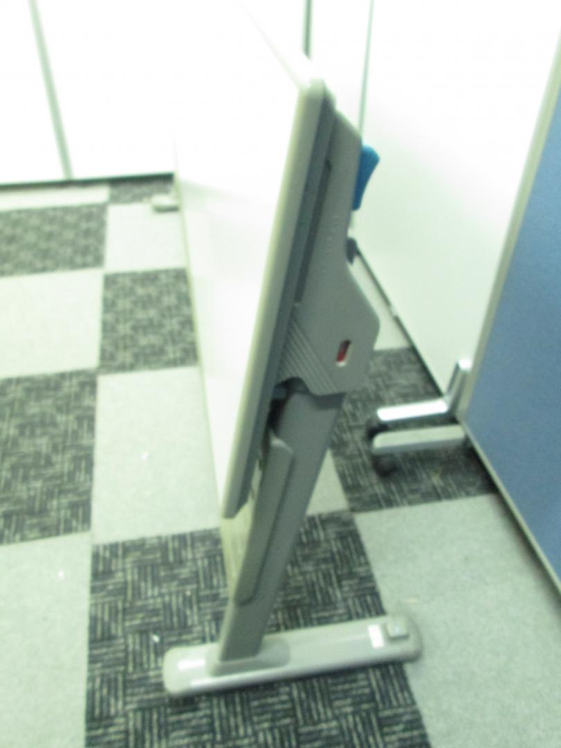 - 一部不具合あり天板歪み、アジャスター無し、キャスター使用不可ようなそのテーブルの本来の効用を果たすための機能以外の一部が使用不可な状態。(例、キャスターロッ ク機能使用不可、棚板無し等がある。)