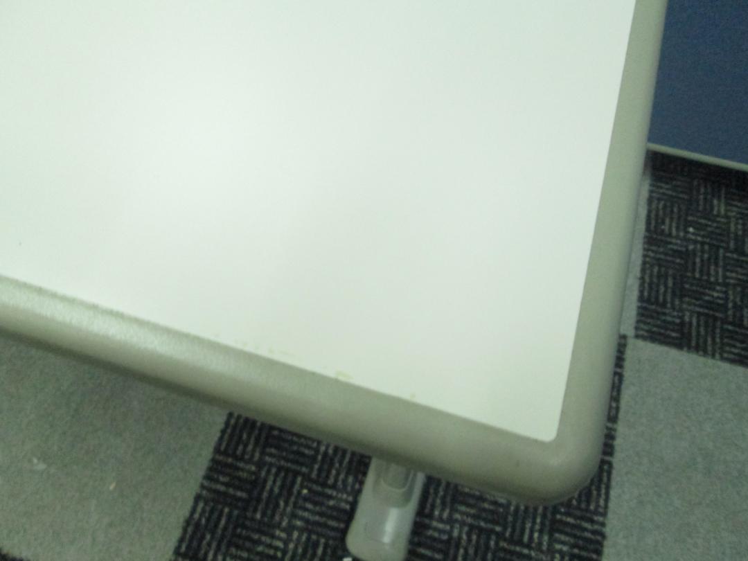 - 壊れている天板歪み、アジャスター無し、キャスター使用不可のようにそのテーブルの本来の効用を果たすための機能に不具合がある。