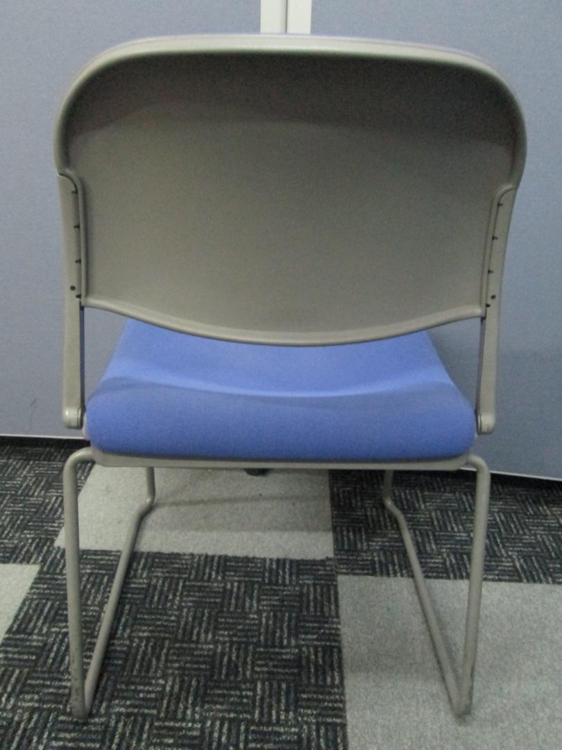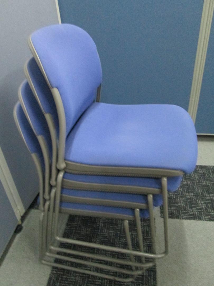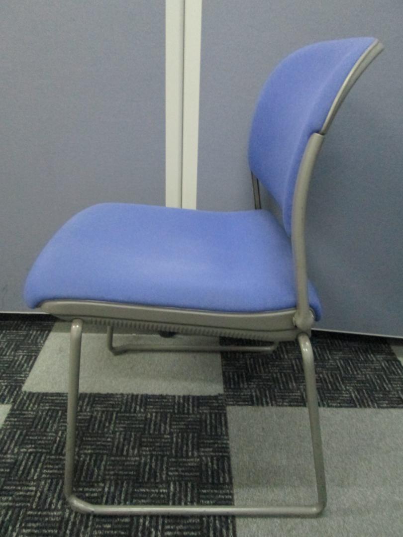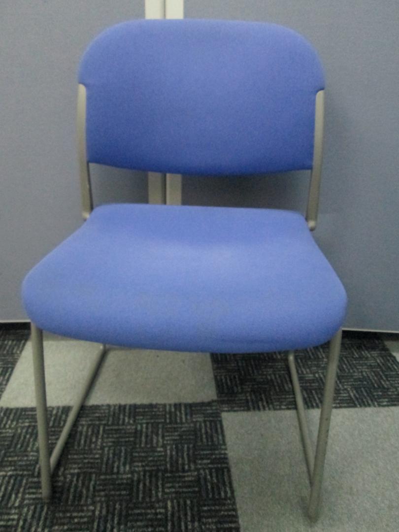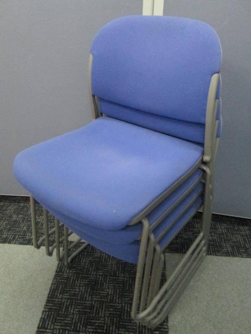 オカムラ製パープルのスタッキングチェアです。会議用テーブル、リフレッシュテーブルに合わせて利用いただけます