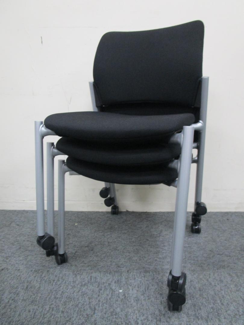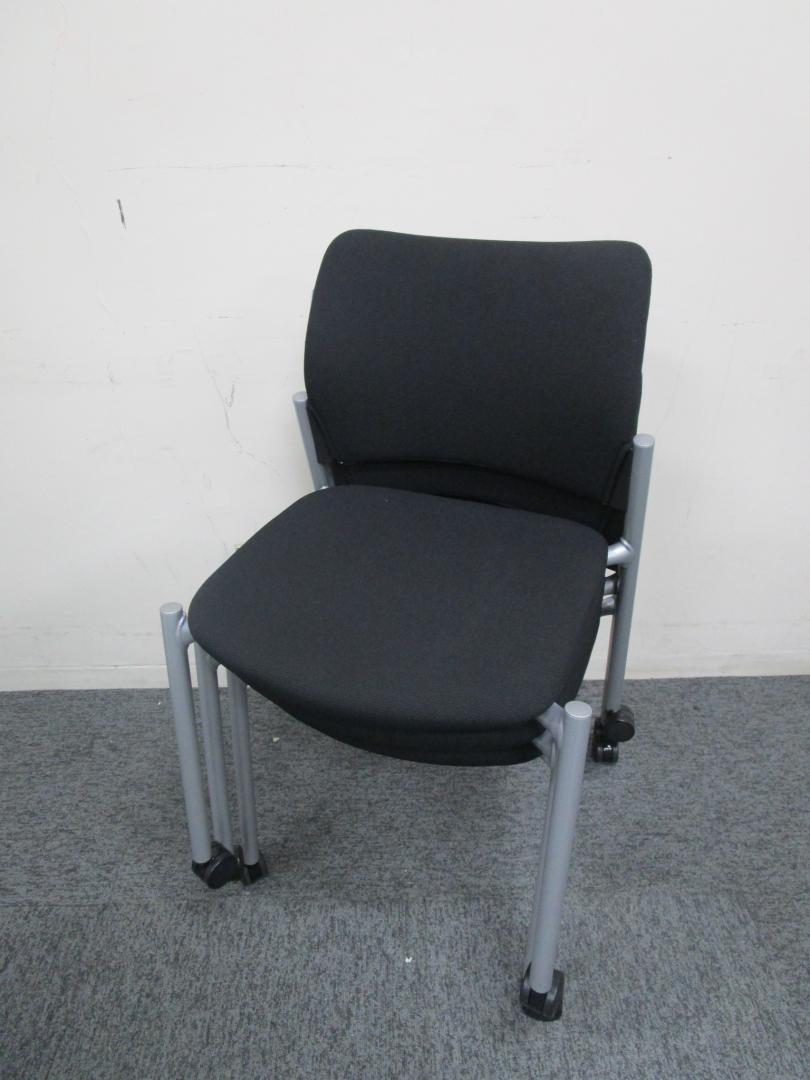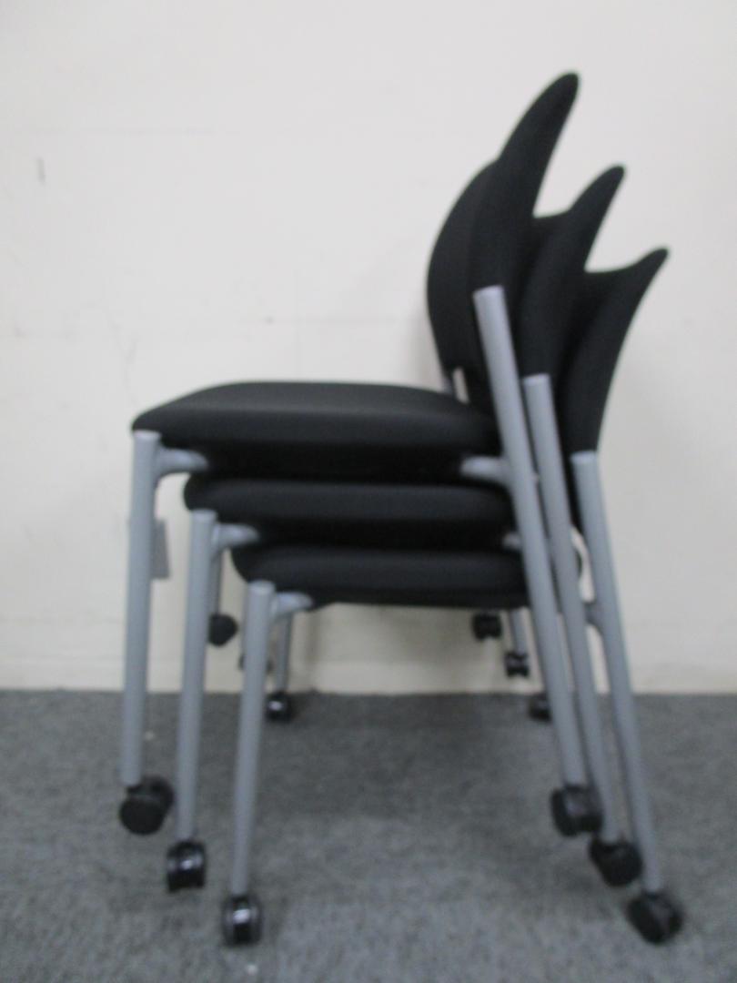 【会議用チェア】重ねて収納出来るシリーズ スタッキングチェア 闇のブラックカラー【状態良好】- 池袋店