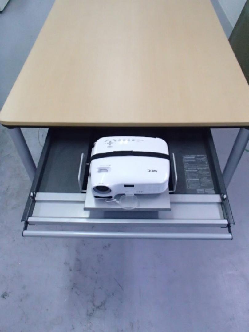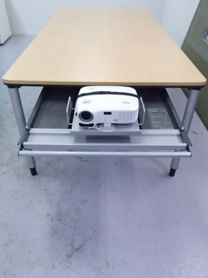 会議用テーブル|大型|ナチュラル|プロジェクター台付き|電源コンセント・情報コンセント付|【希少品】- 大阪・堺店