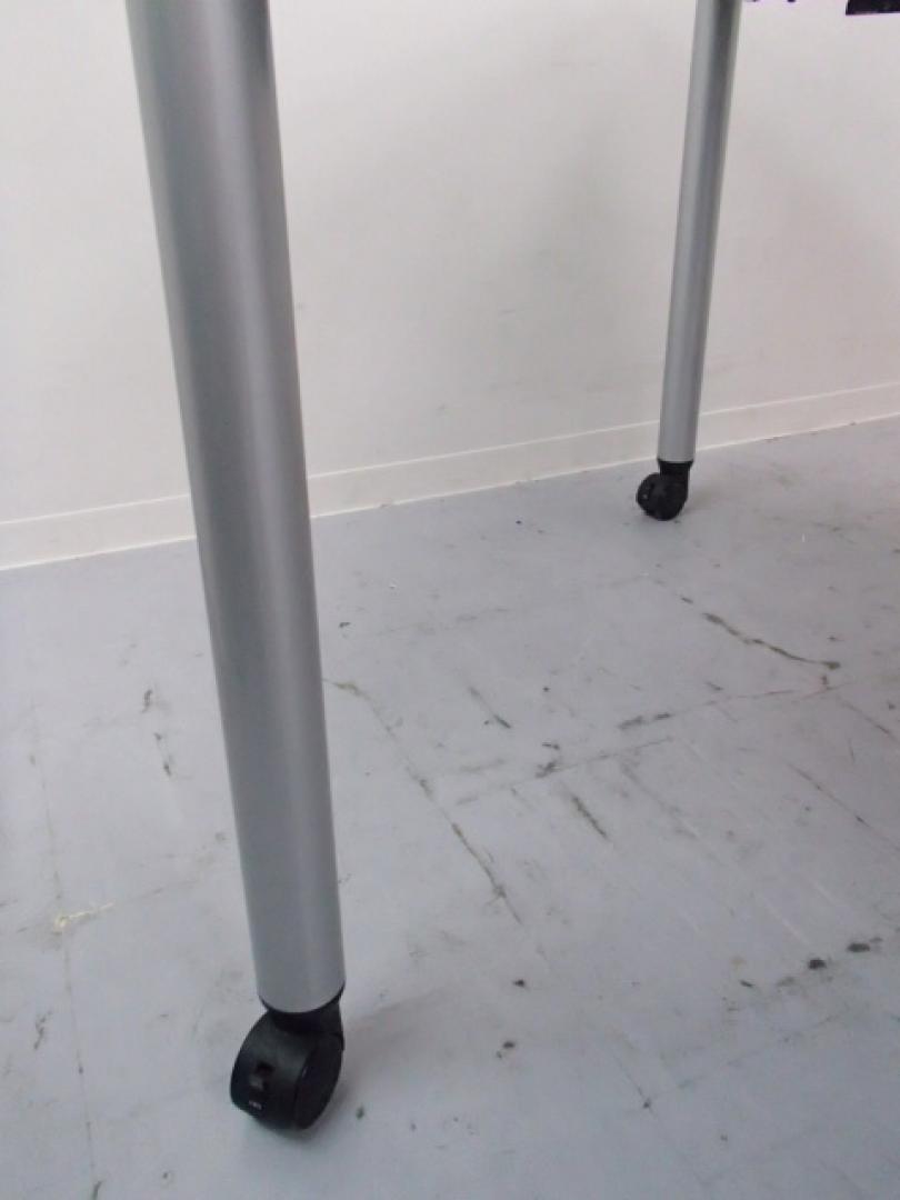 - 一部不具合あり天板歪み、アジャスター無し、キャスター使用不可ようなそのテーブルの本来の効用を果たすための機能以外の一部が使用不可な状態。(例、キャスターロッ ク機能使用不可、棚板無し等がある。)