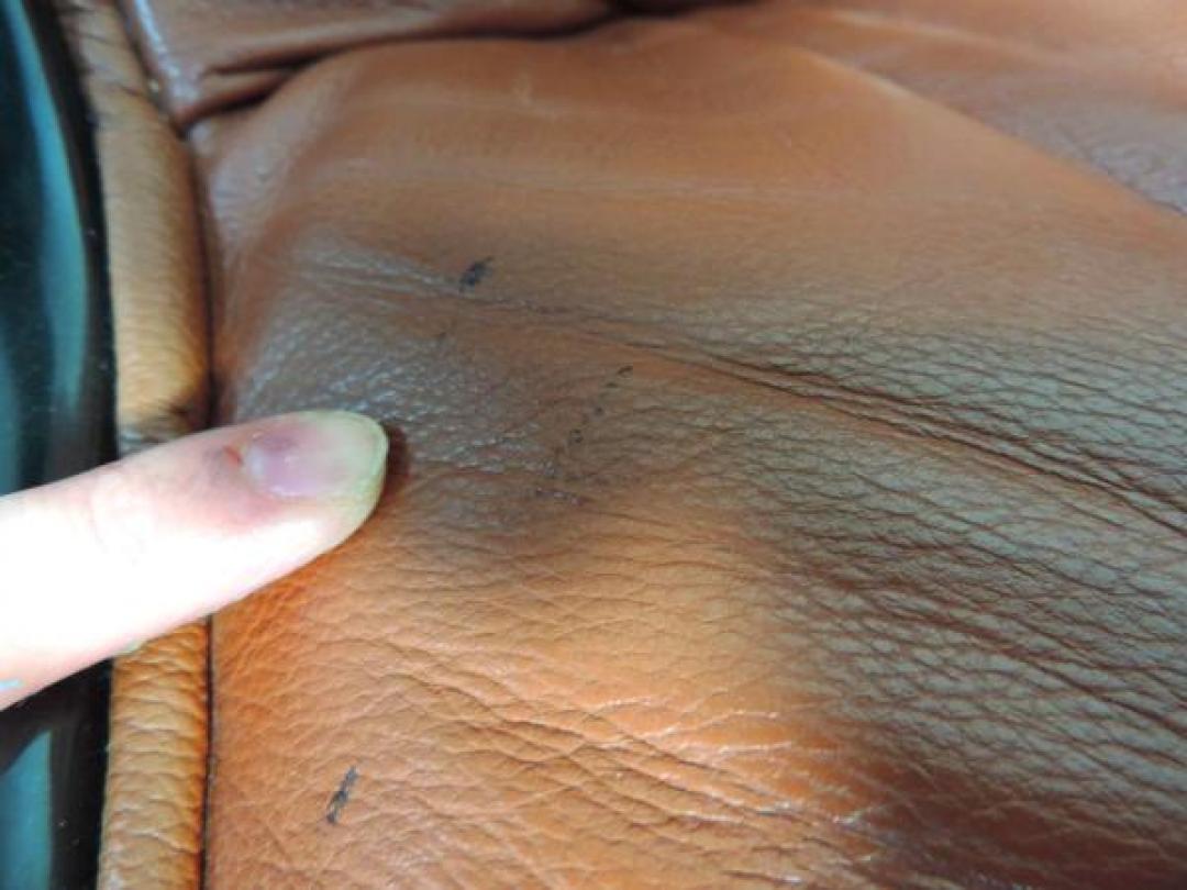 - あり黄ばみ・変色が広い範囲にうっすらある、または濃い黄ばみ・変色が一部ある。(例、座面・背もたれ、脚部等にある。)