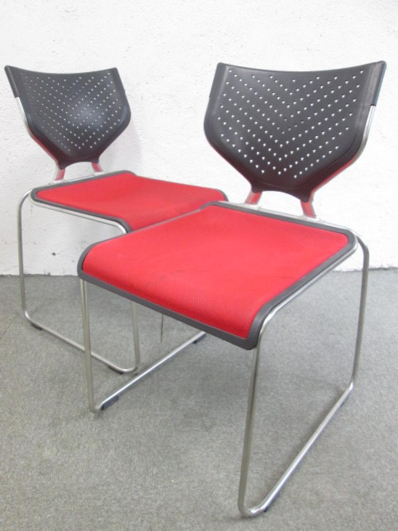 【通常価格の10%OFF!】オカムラ製 スタッキングチェア レッド 【お得な2脚セット商品です】- 横浜本店
