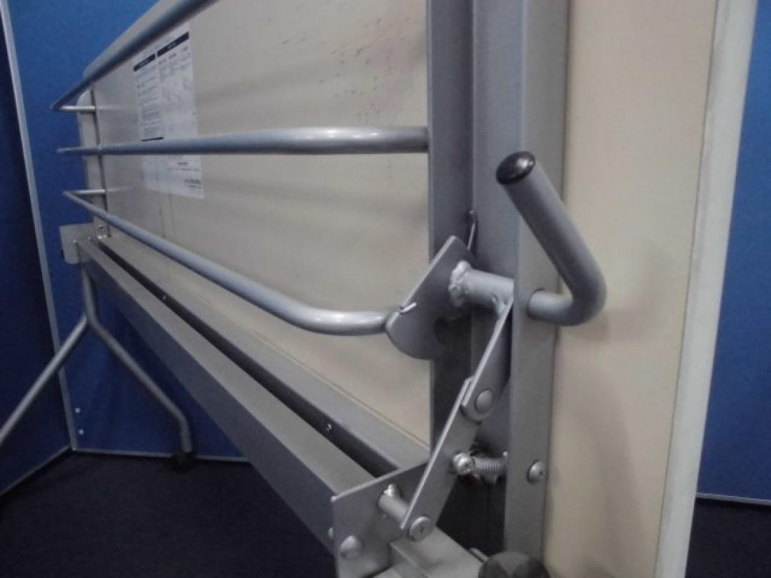 - 一部不具合あり天板歪み、アジャスター無し、キャスター使用不可ようなそのテーブルの本来の効用を果たすための機能以外の一部が使用不可な状態。(例、キャスターロッ ク機能使用不可、棚板無し等がある。)