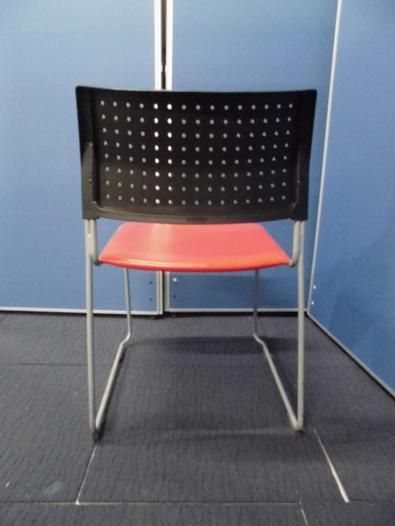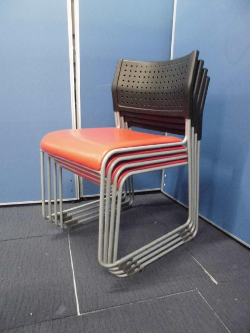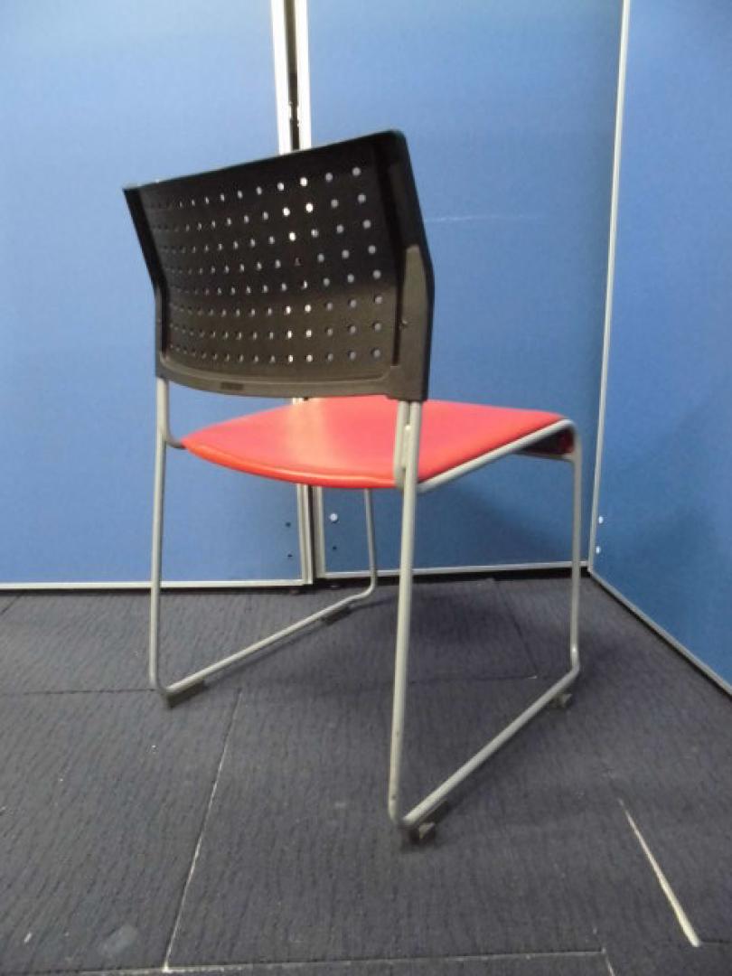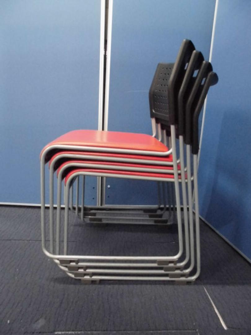 【レッド×ブラック】会議用スタッキングチェア|座面ビニールレザーなので汚れても拭き掃除ができます!- 立川・八王子店
