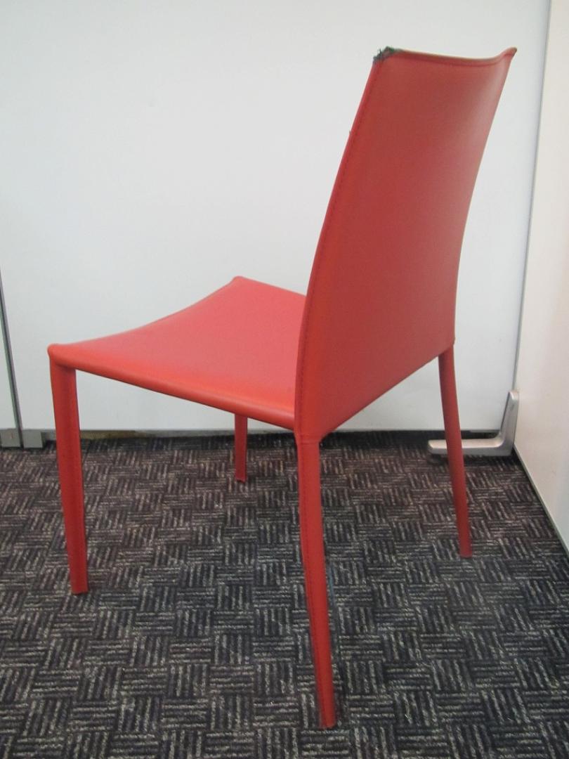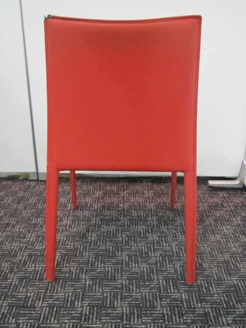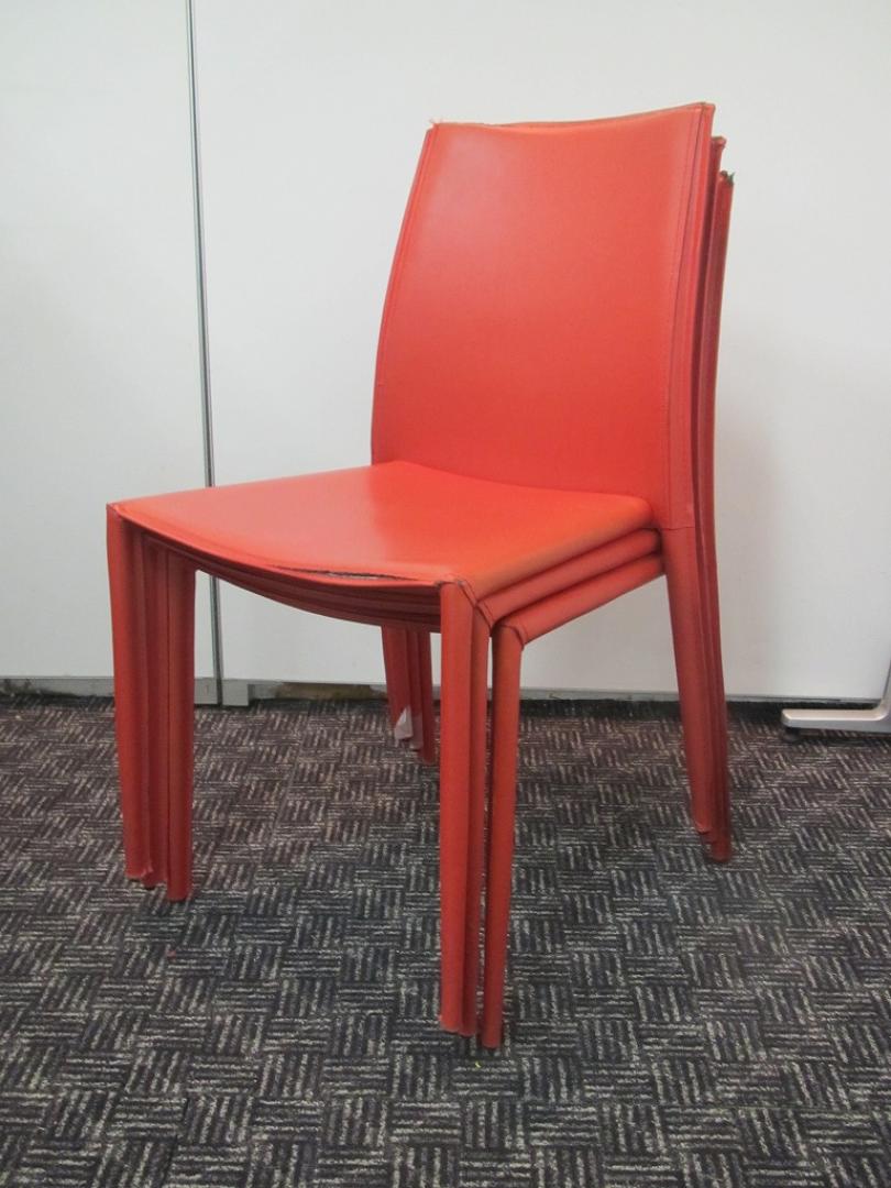 【鮮やかなレッドのチェア3脚セット】【傷、破れ有の為】【オツトメ品】~スタッキングチェア レザー張り~- 在庫数