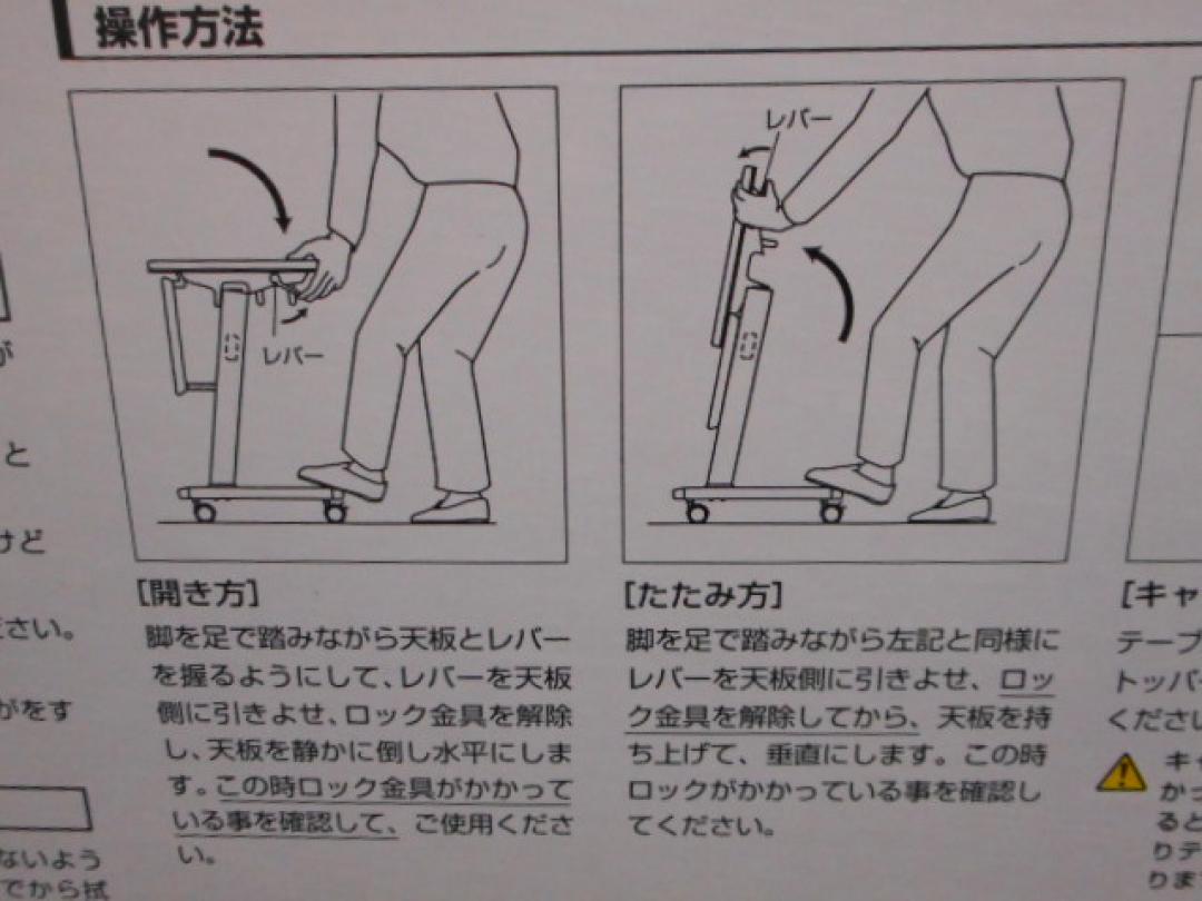 天板左側のレバー操作で簡単に天板を折りたたむことができます。
