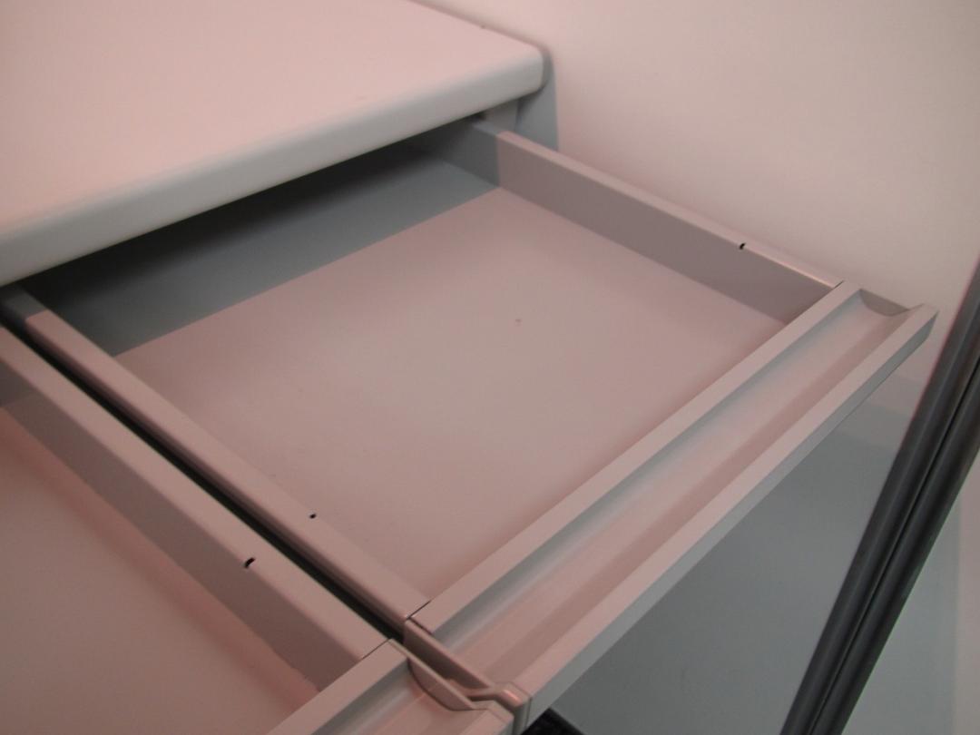 - シンプルながらも使いやすい工夫があります。ロックは、一度の施錠ですべての引出しの鍵がかかるオールロック機構。