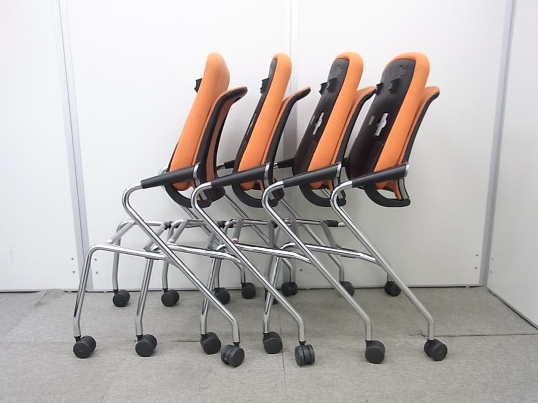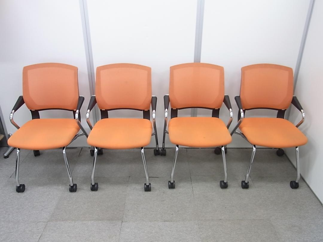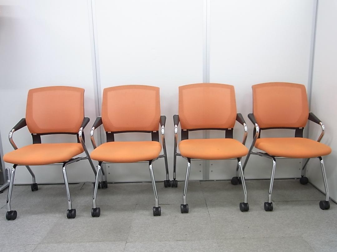 【4脚セット】コクヨ製 サテリテ 背面メッシュ マンダリンオレンジが美しい■ミーティングスペースにおすすめのネスティングチェア在庫がある店舗一覧