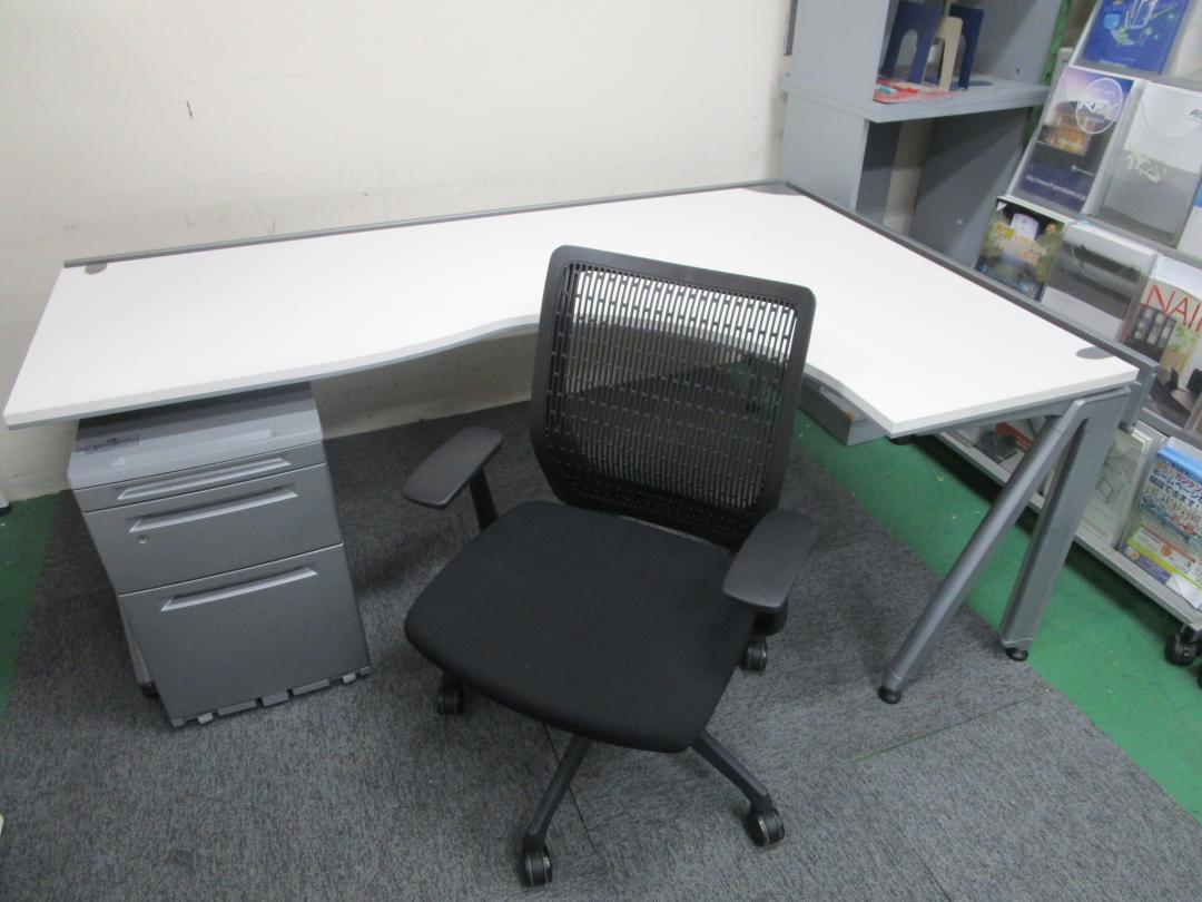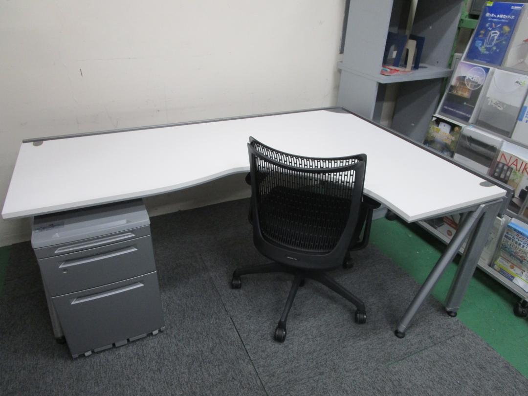 オカムラ製、プロステージシリーズのL字デスク・V脚タイプ右用です。