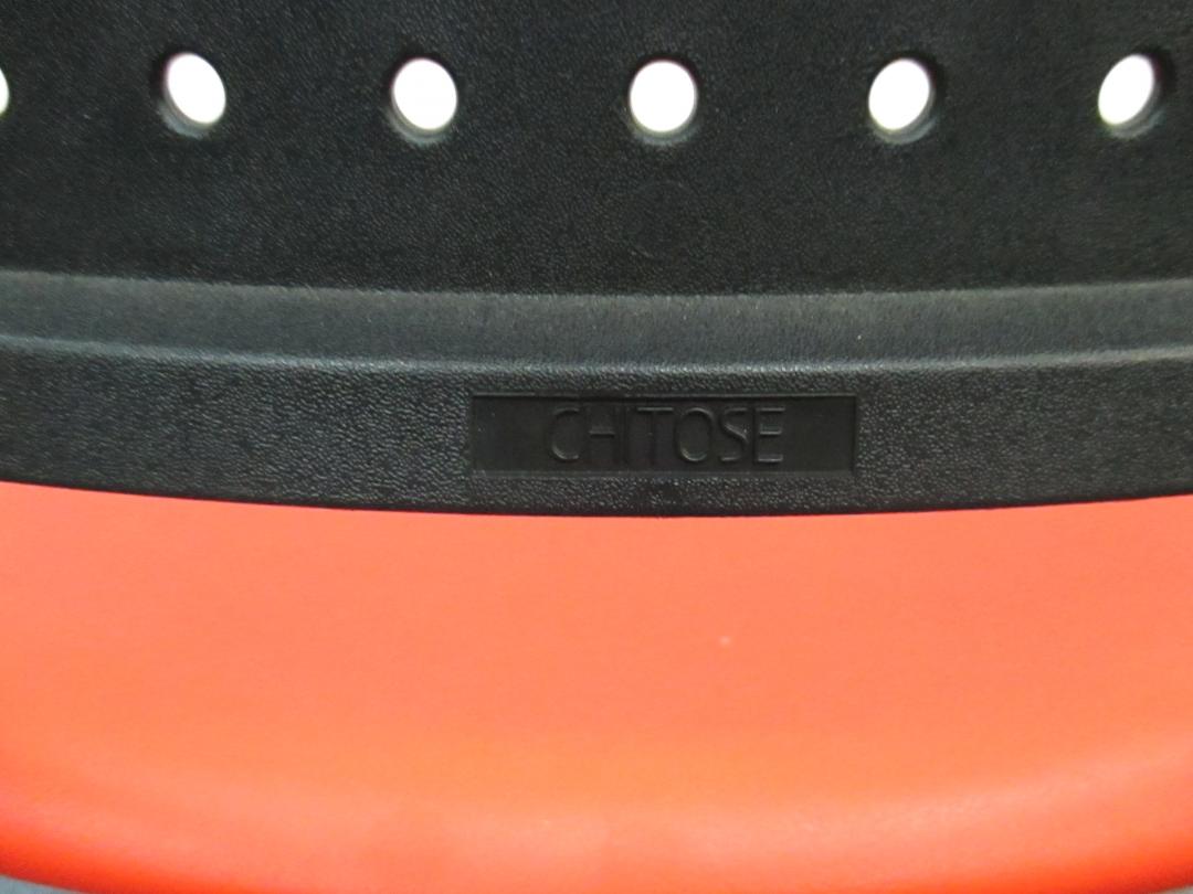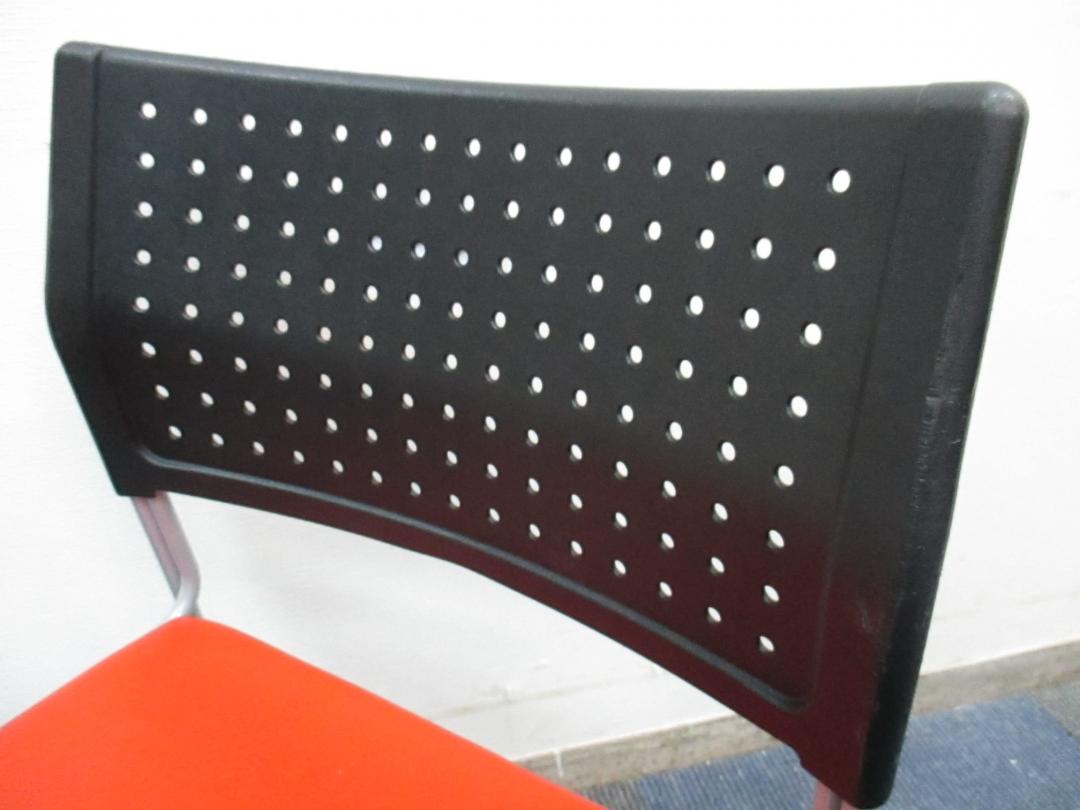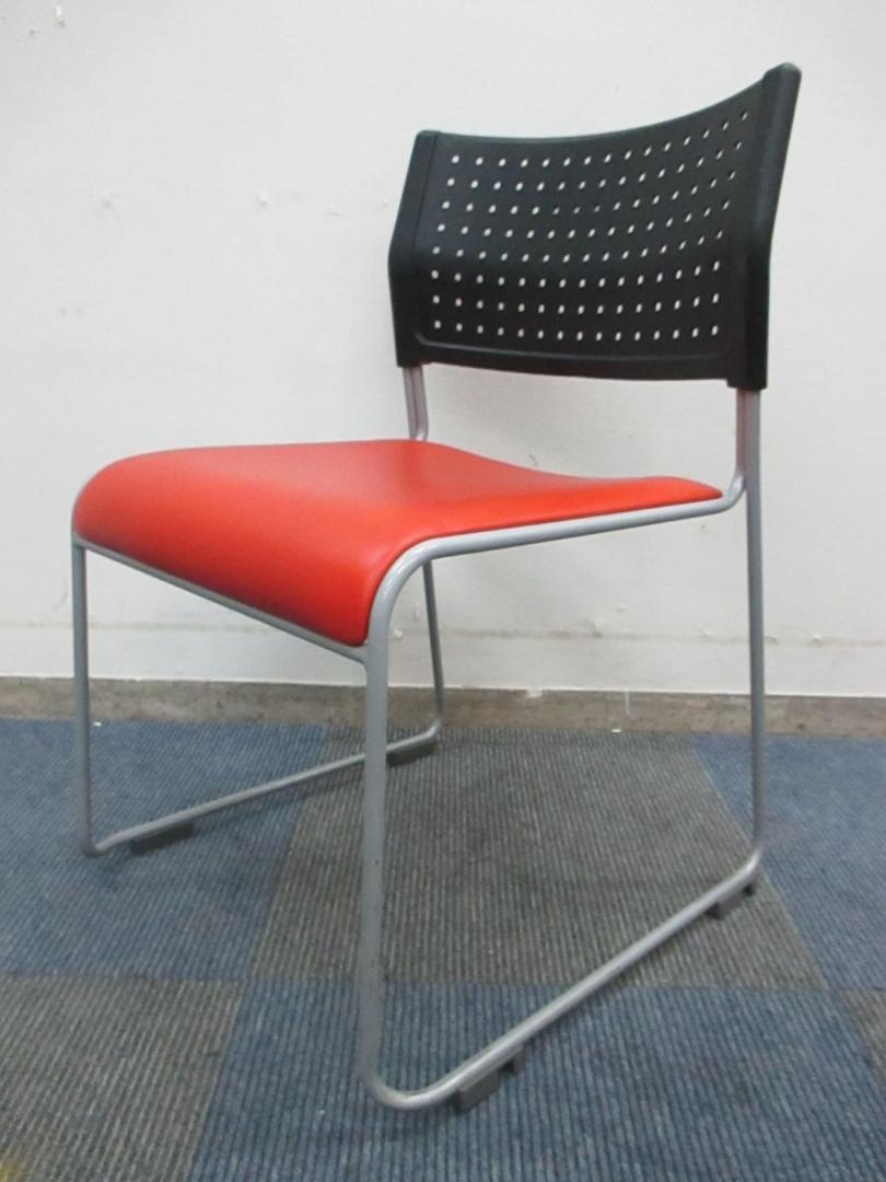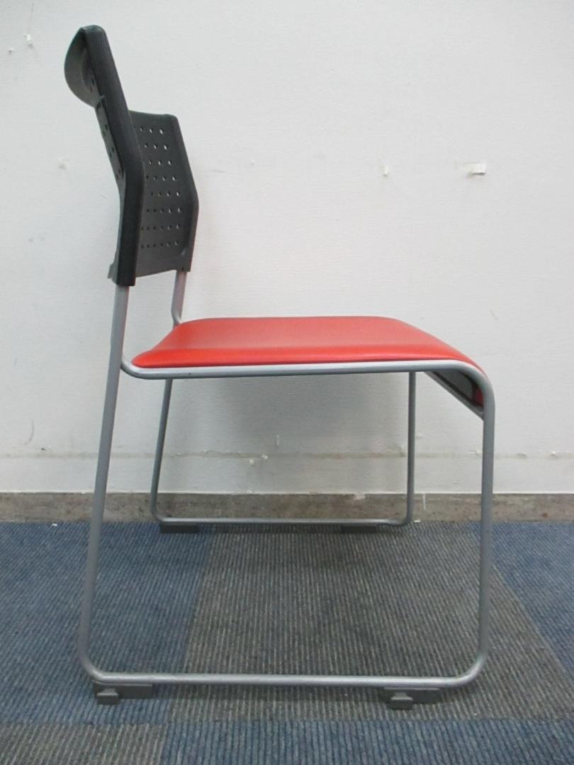鮮やかなレッド色が目を引くアイリスチトセ製のスタックチェアです。