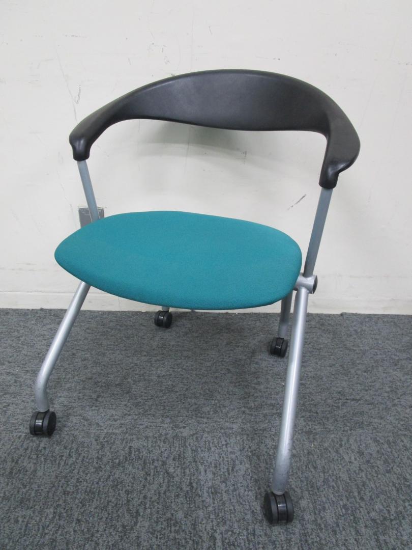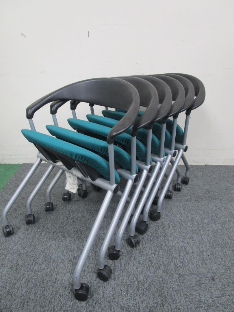 【セット商品】【4脚セット】内田洋行製 ネスティングチェア4脚セット 色:グリーン【状態良好】- 池袋店