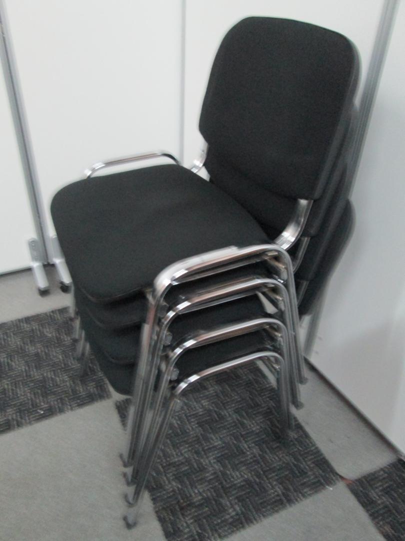 大人気のブラックカラーの会議テーブルや休憩室で活躍するスタッキングチェアです。