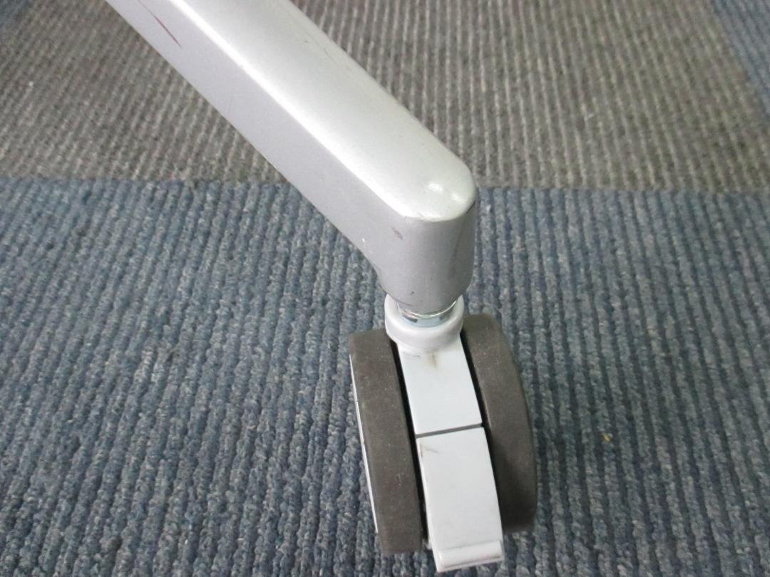 - 一部不具合あり天板歪み、アジャスター無し、キャスター使用不可ようなそのテーブルの本来の効用を果たすための機能以外の一部が使用不可な状態。(例、キャスターロッ ク機能使用不可、棚板無し等がある。)