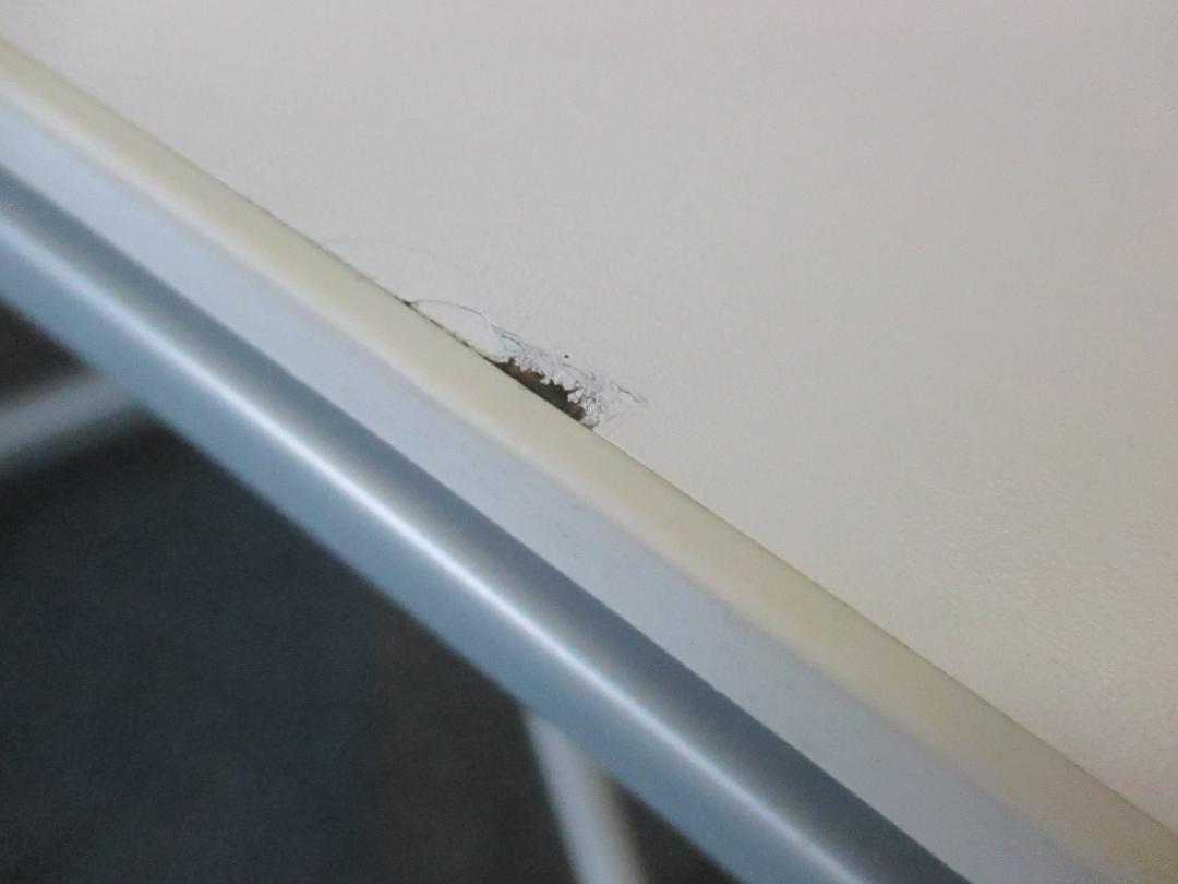 - 壊れている天板歪み、アジャスター無し、キャスター使用不可のようにそのテーブルの本来の効用を果たすための機能に不具合がある。