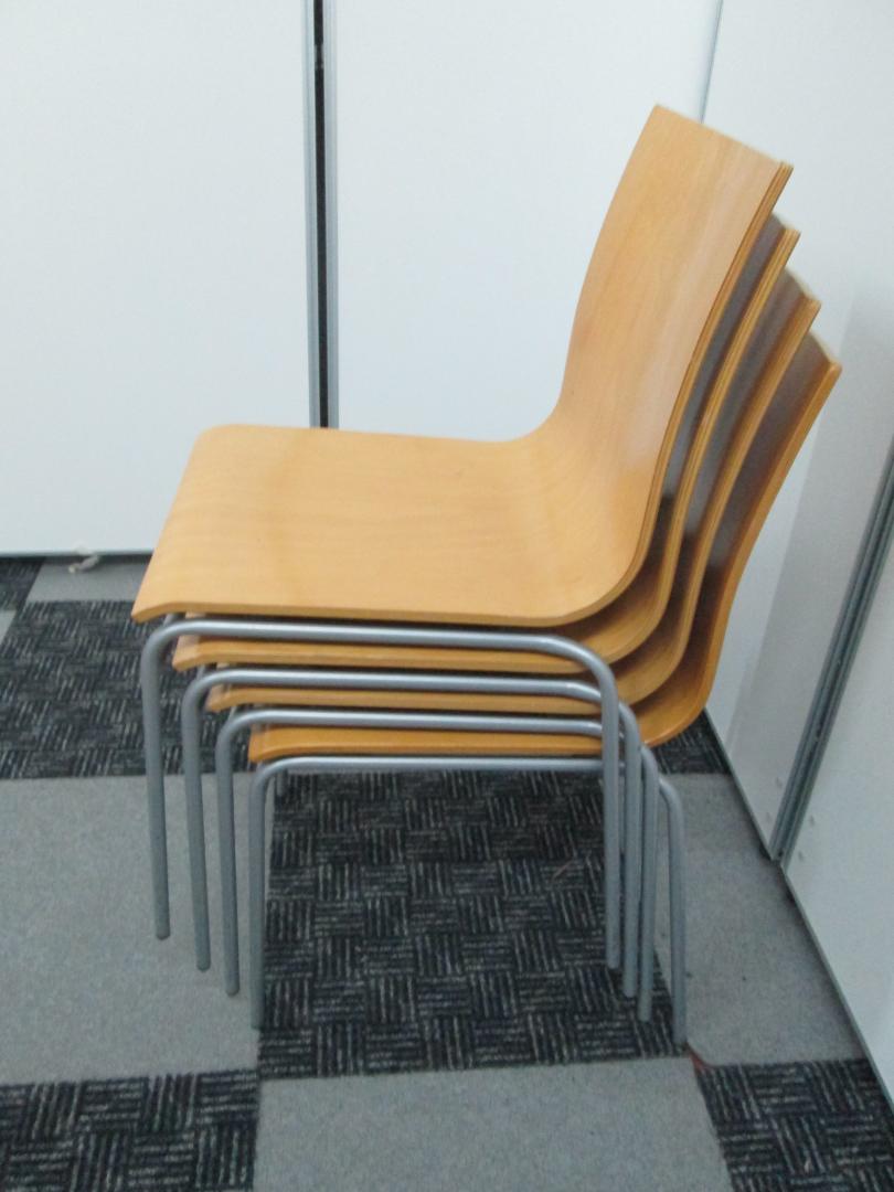 オシャレな木製のスタッキングチェアです。休憩室や待合室等に最適です。- 名古屋本店