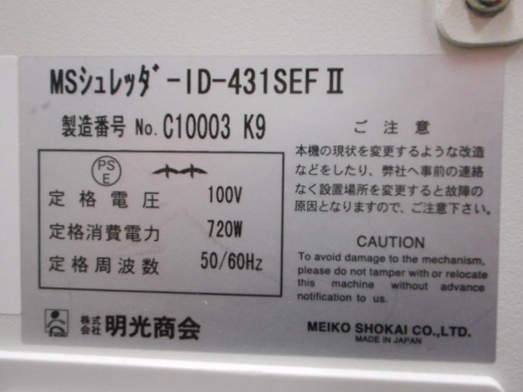 【中古】 MS-ID431SEFII 明光商会 シュレッダー 134322