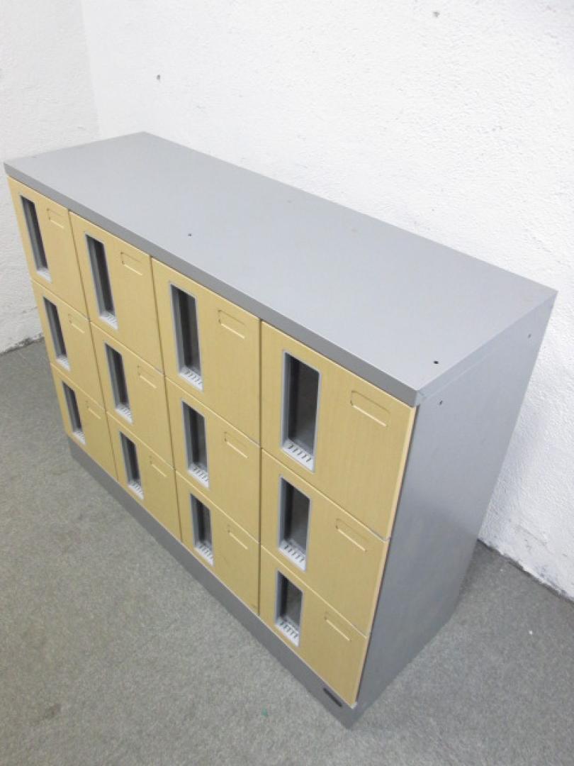 【オシャレ下駄箱】【オカムラ製 12人用シューズボックス】【珍しいナチュラル色】- 横浜本店