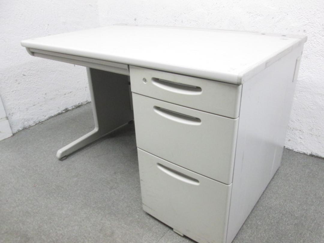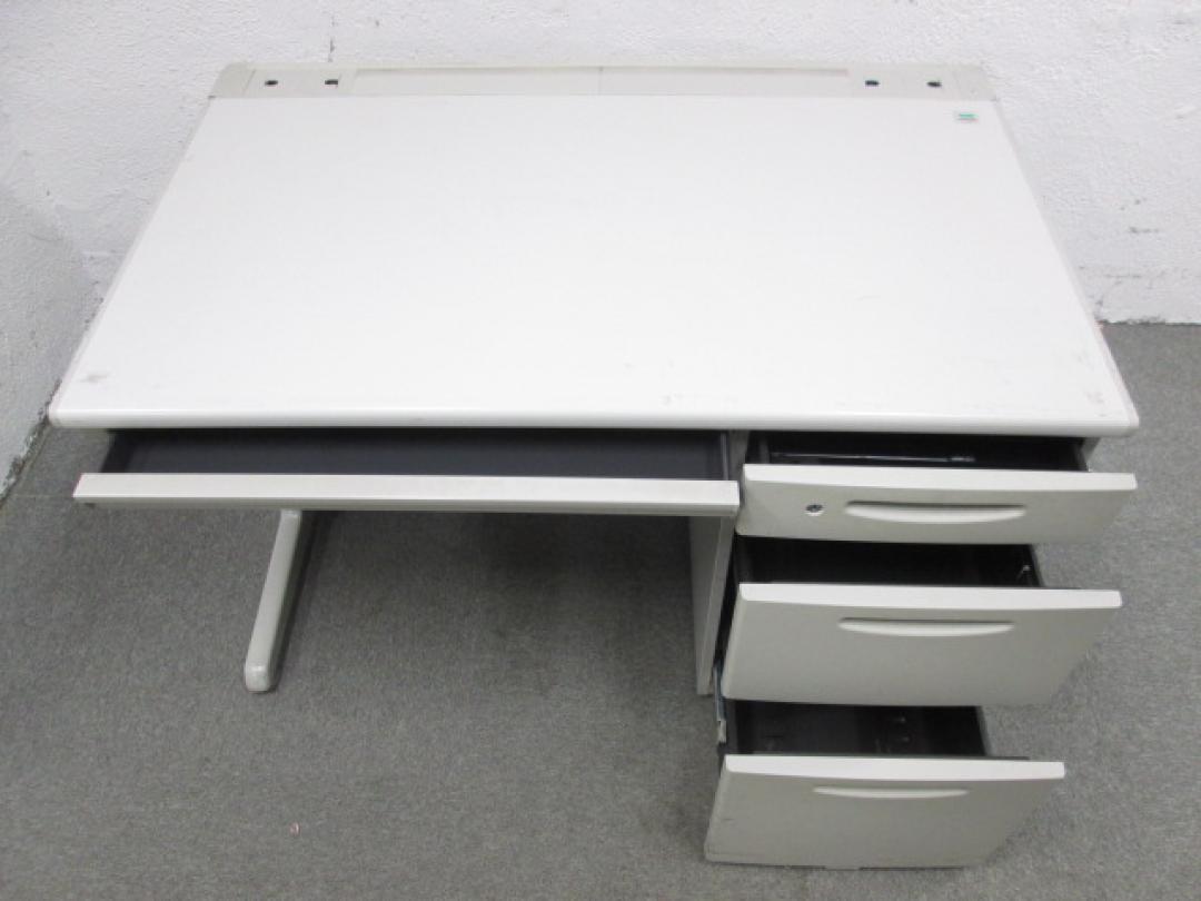 【一直線の配線タップでスッキリ収納】【オカムラ製 片袖机W1100 SD-e ニューグレー】- 横浜本店