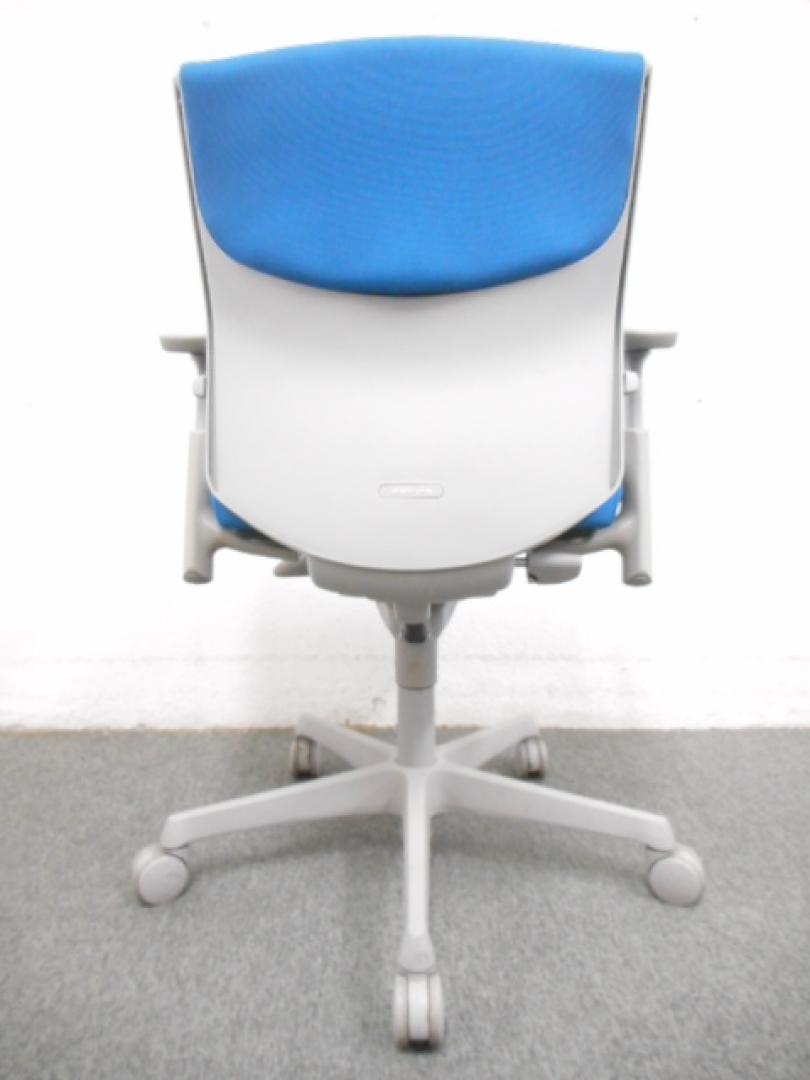 【在庫入替セール】オカムラ エスクード ローバックモデル クッションタイプ デザインアーム付き ブルー×グレーフレーム ランバーサポート搭載で安定感のある機能面と座り心地