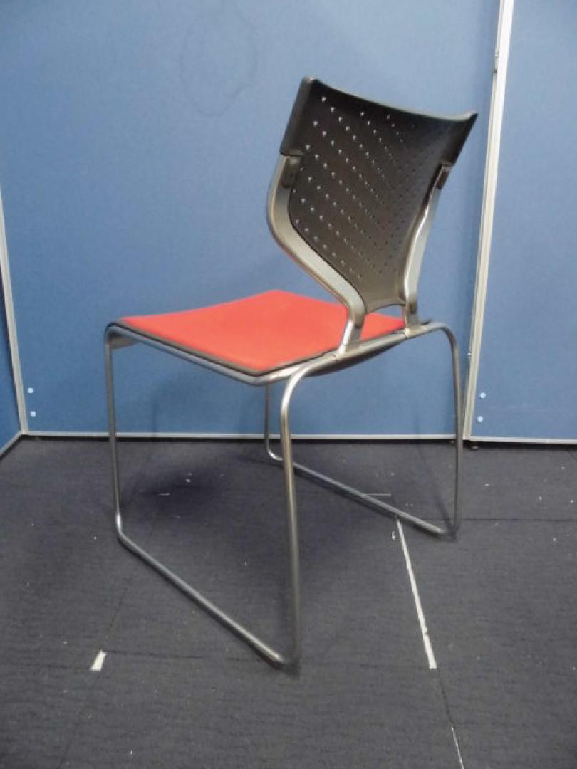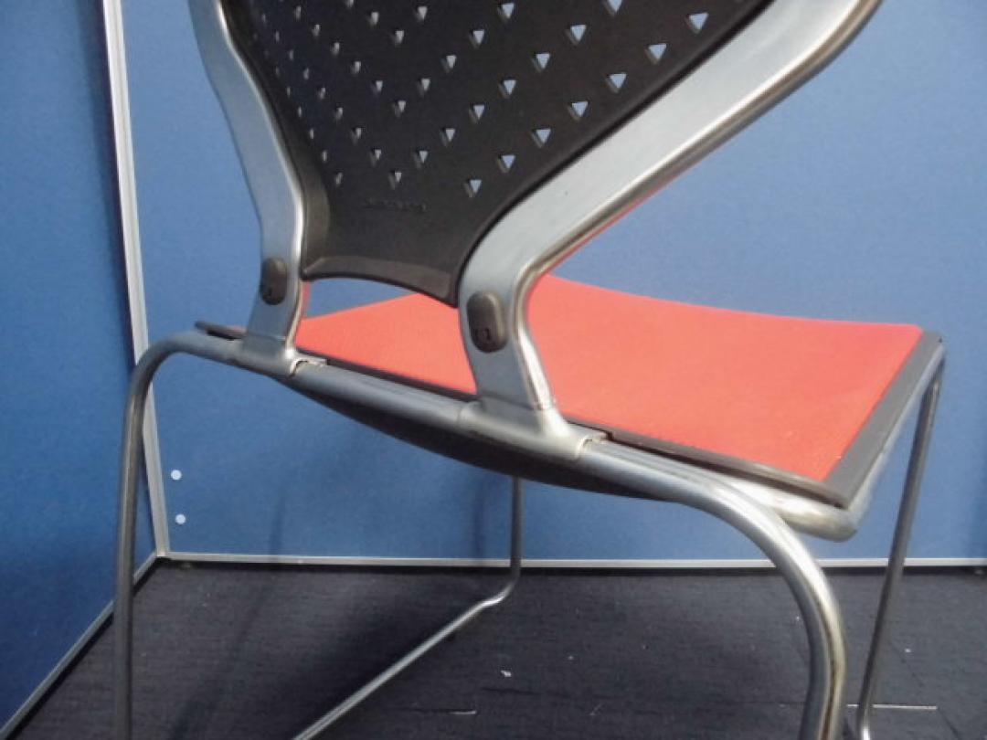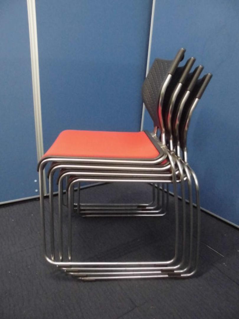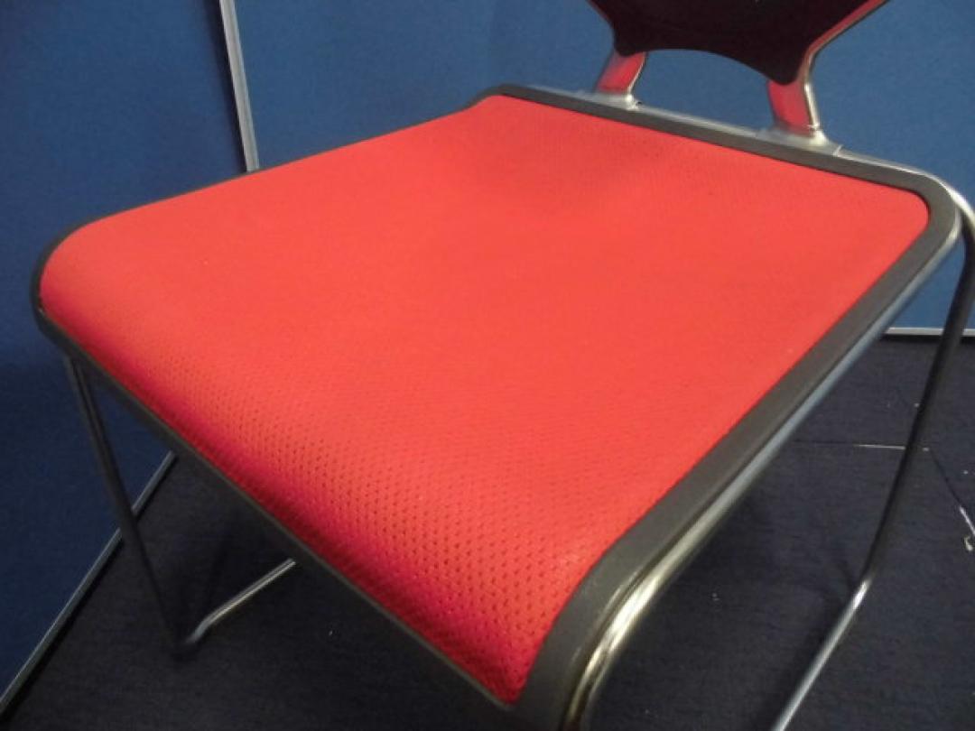 【オシャレなスタッキングチェアセット】オカムラ製|レッド×ブラック|背中の形がカワイイです!【ロット】【セット商品】- 立川・八王子店