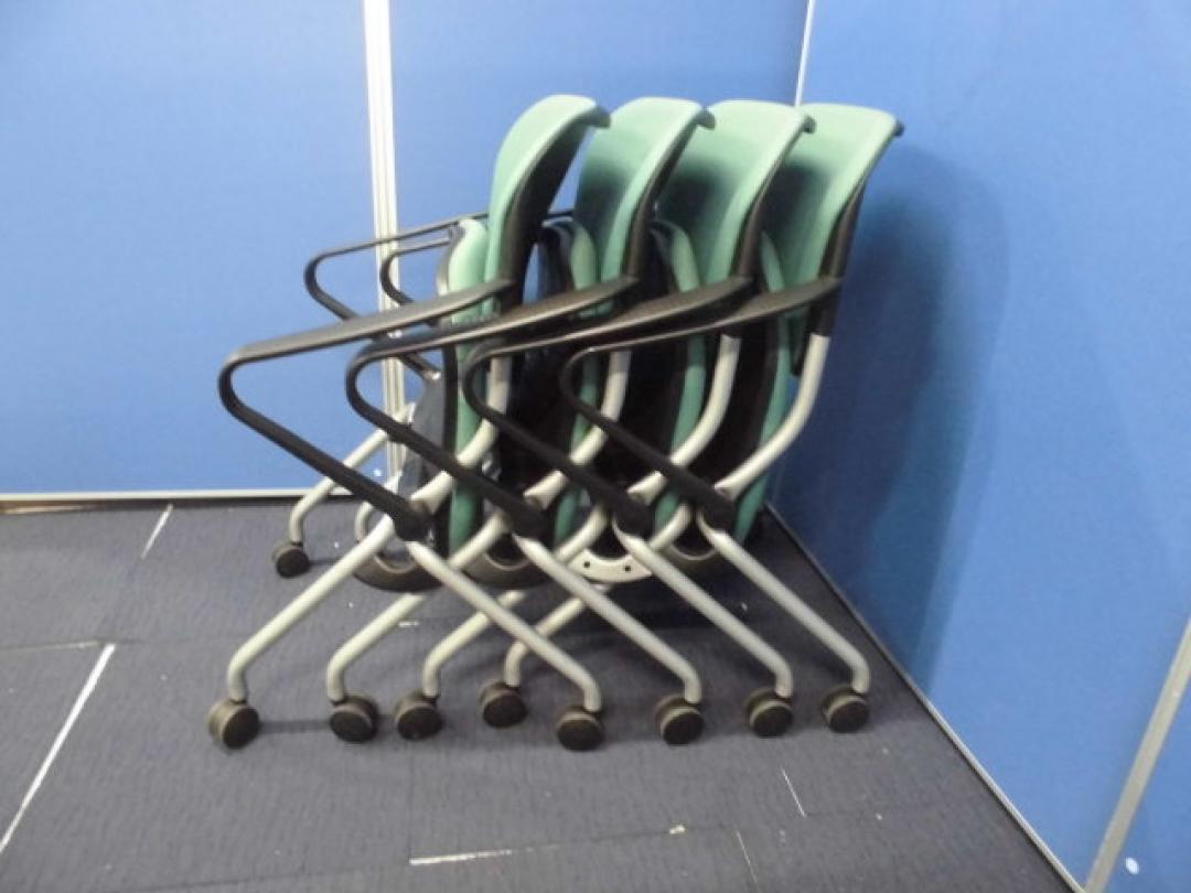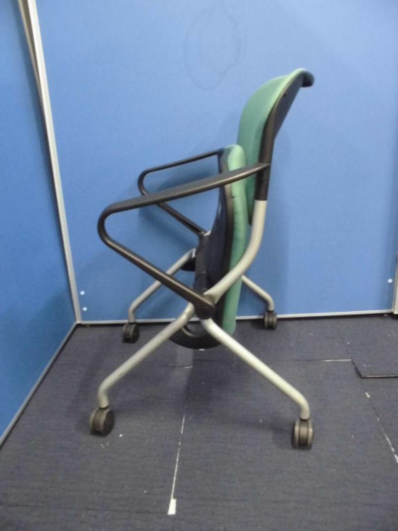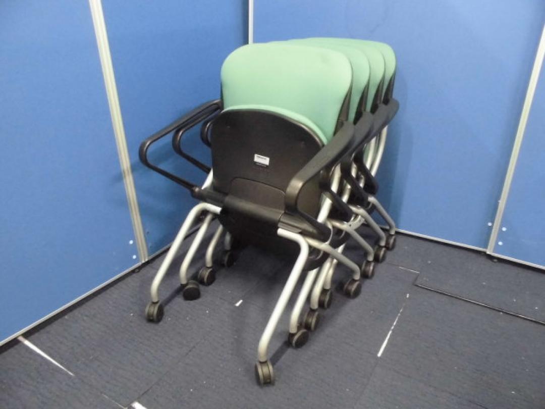 オカムラ|TORSION(トーション)シリーズ|肘付 ネスティングチェア|グリーン【ロット】- 立川・八王子店