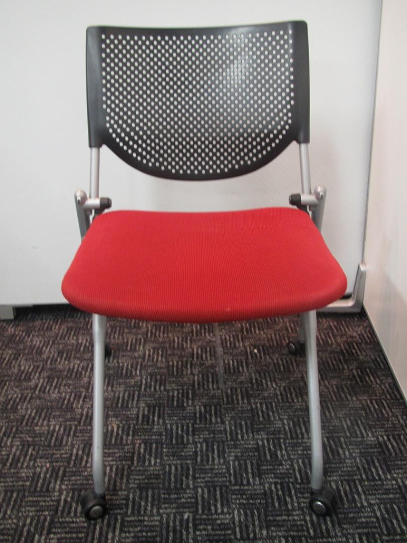 【1脚限定 オカムラ製プロスタックチェア】【1点物】~鮮やかなレッド色 ネスティング~- 在庫数