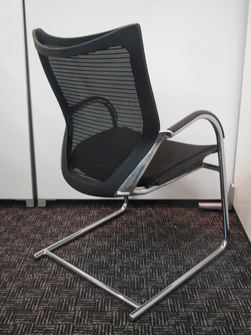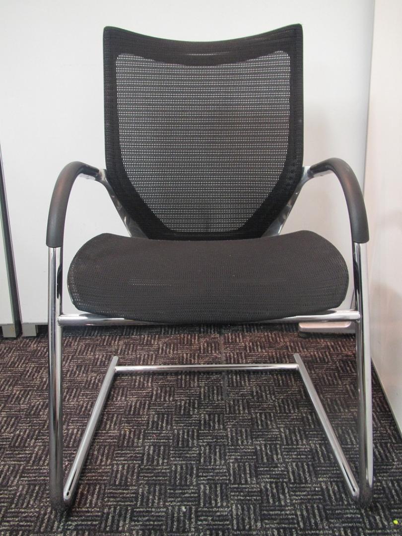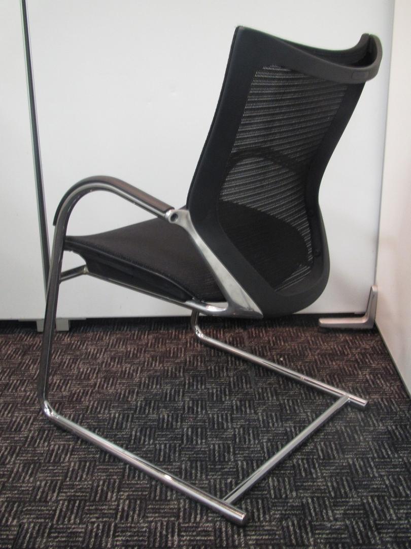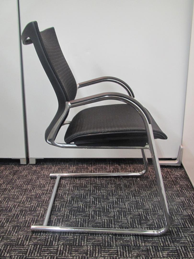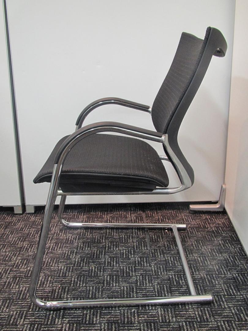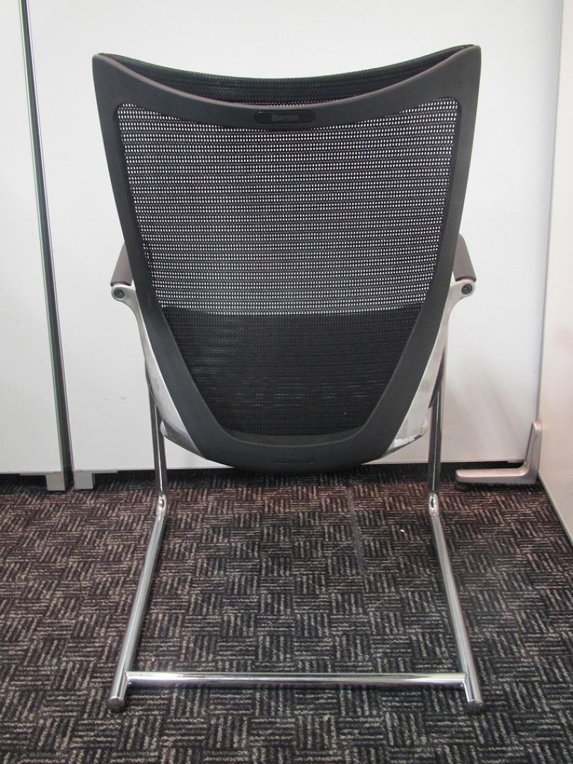 【在庫入替セール】オカムラ バロン ゲストチェア(ミーティングチェア) 背メッシュ×座クッション カンチレバー脚 ブラック×クロームメッキ