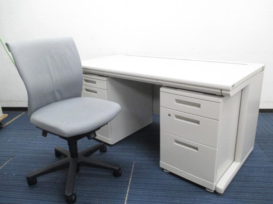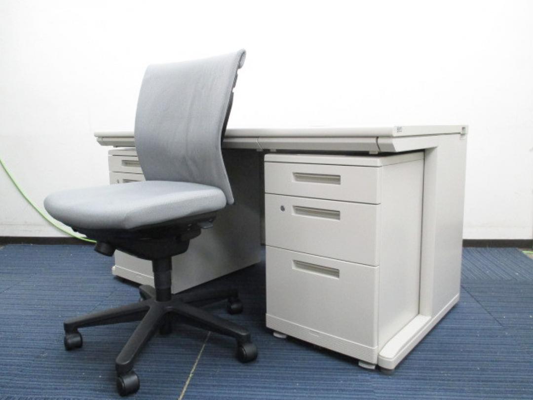 【状態良好品】疑似両袖机と椅子のセット品|平机×3段ワゴン×3段ワゴン×トレンザチェア|幅1400mm|新型MXタイプ|部材完備|国産だと安心!【セット商品】- 日本橋店