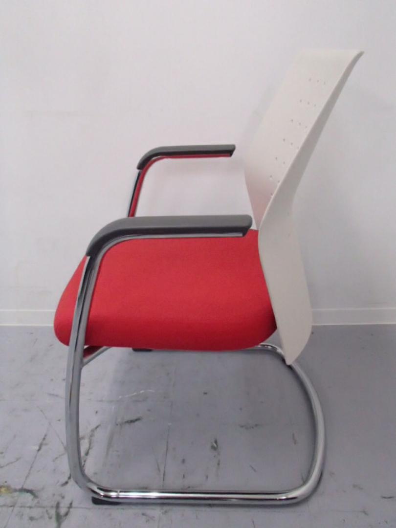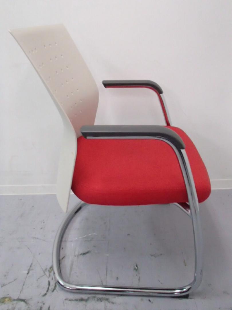 【ミーティングチェア】|肘付き|レッド|ミーティング空間を知的に彩る、洗練されたスリムなフォルム!- 大阪・堺店