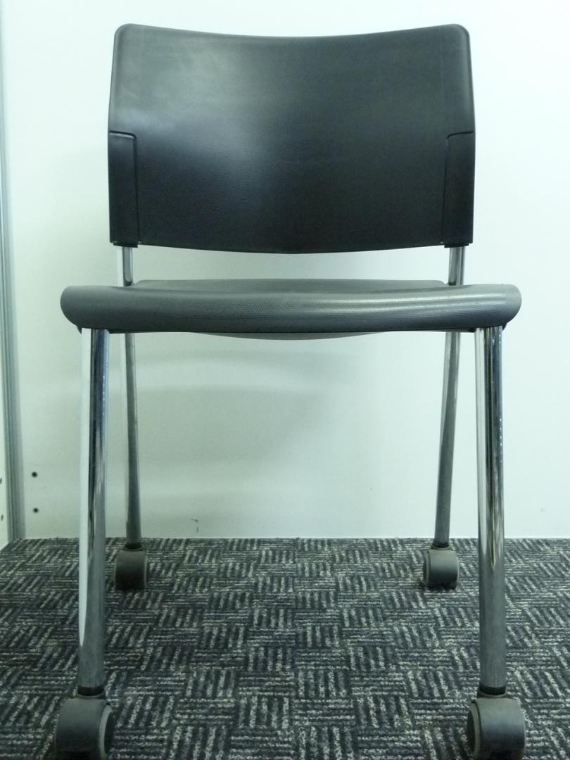 【限定4台】■キャスター付で自由な動きが可能なスタッキングチェア■落ち着いた色合いなのでどんなオフィスにも似合います- 埼玉本店